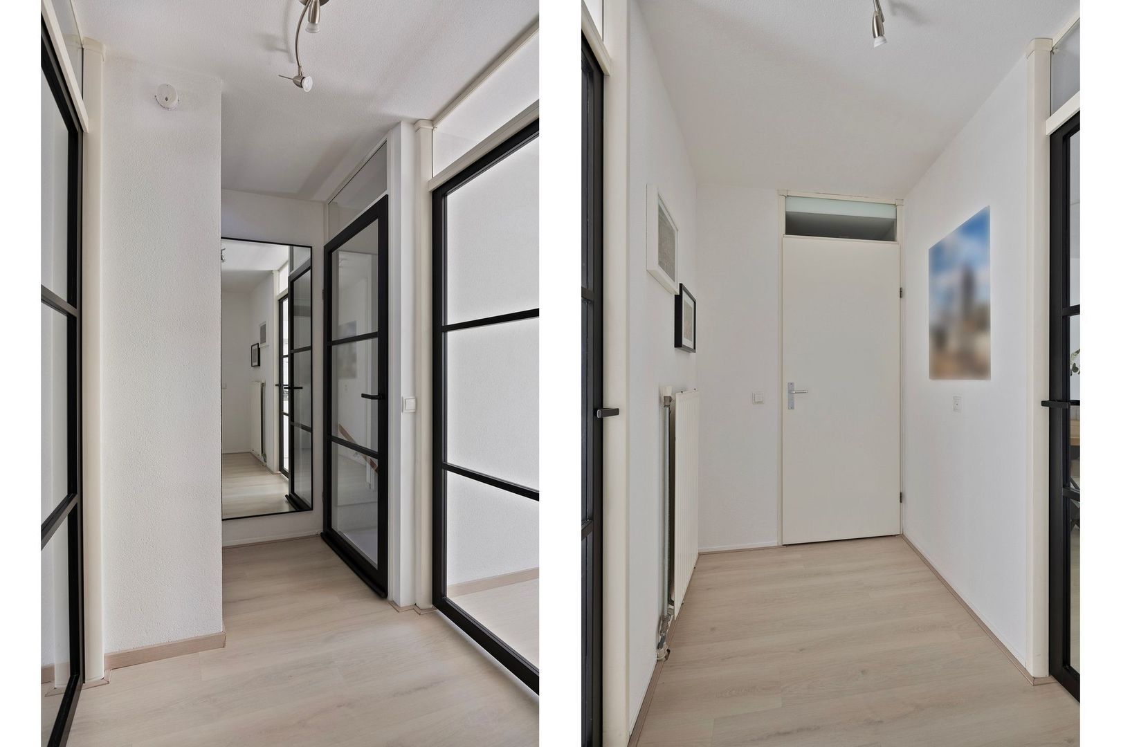 Overloop met toegang tot het toilet, de woonkamer, keuken en trapopgang naar de 2e verdieping.