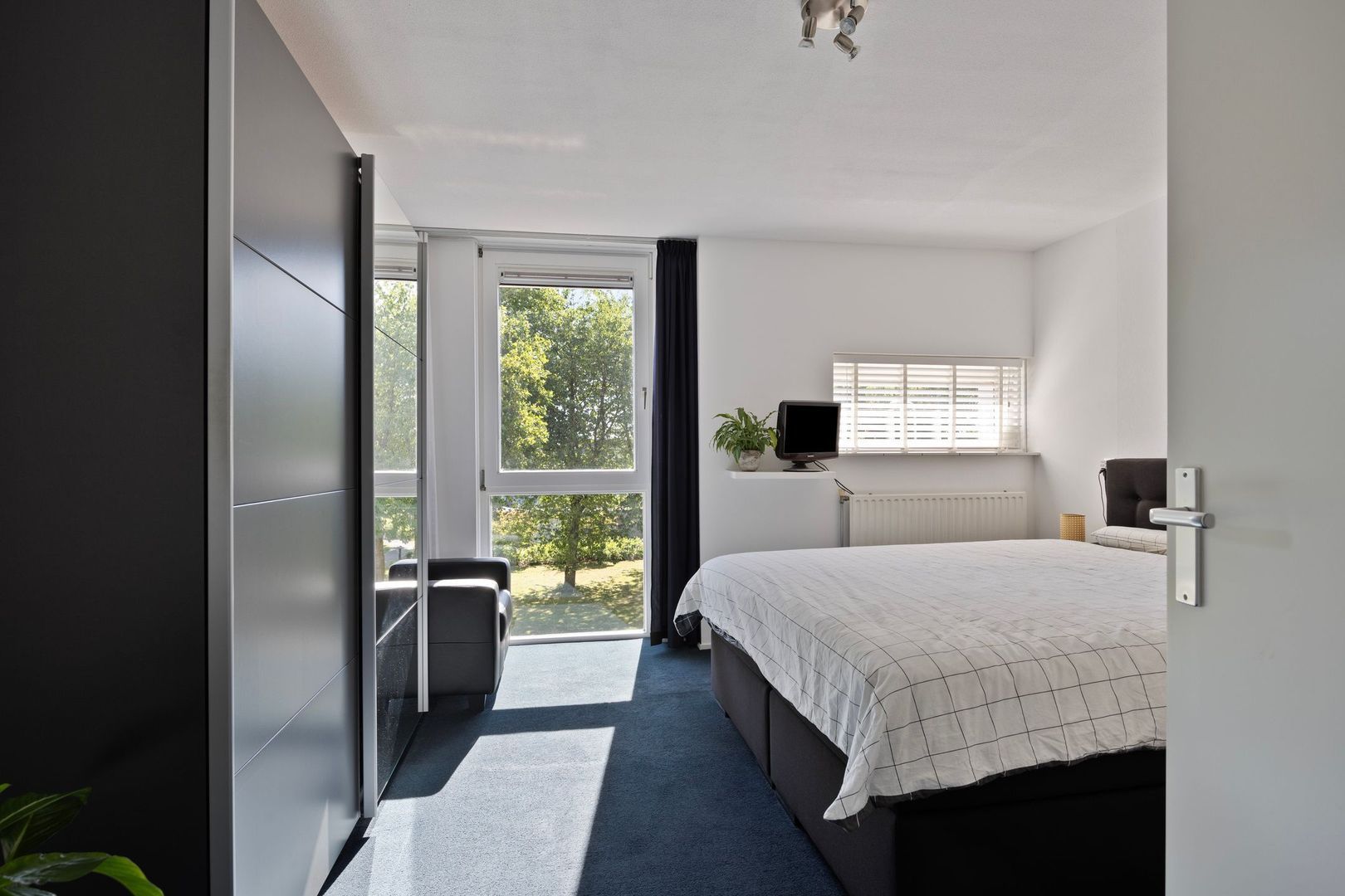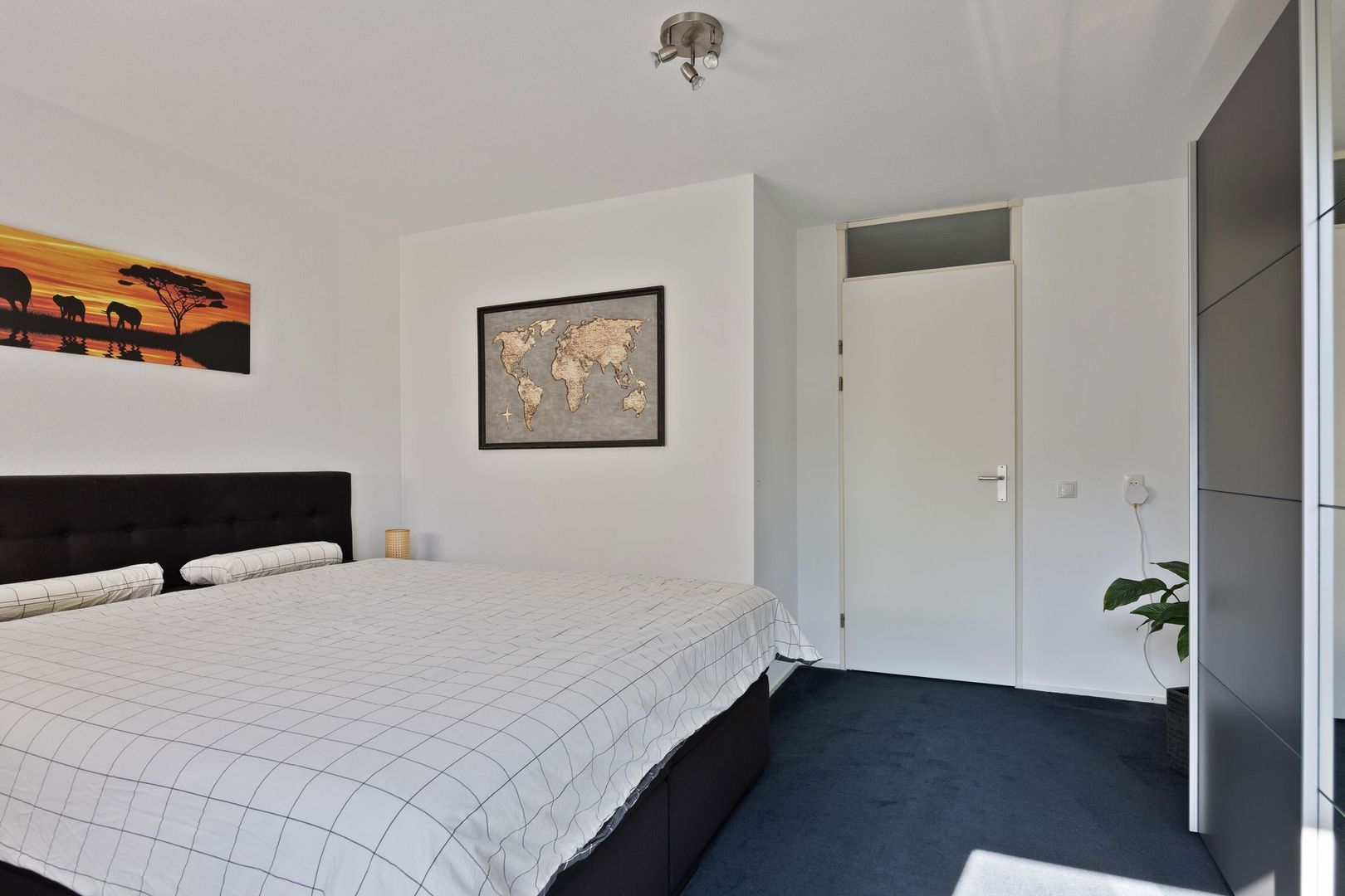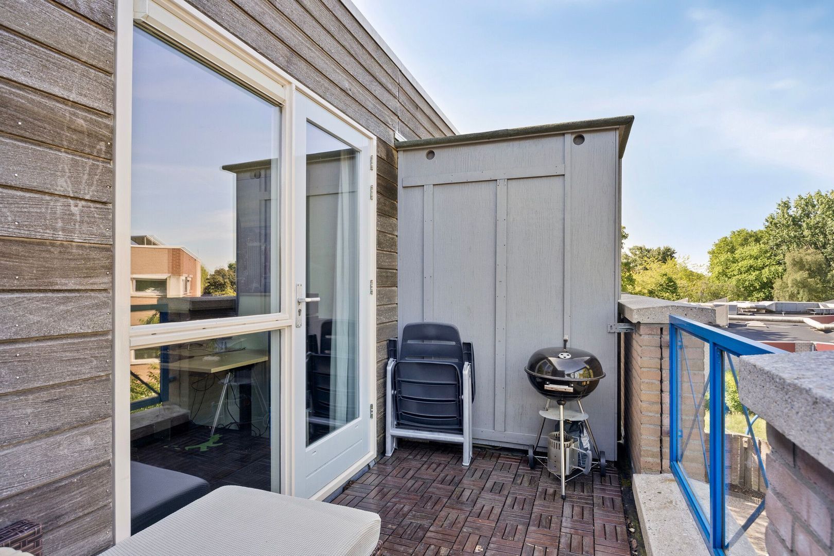 De slaapkamer aan de achterzijde geeft toegang tot het balkon, dat op het zuidwesten ligt. Hier is het heerlijk zitten in de middag- en avondzon. Op het balkon is een bergkast aanwezig voor extra opbergruimte.