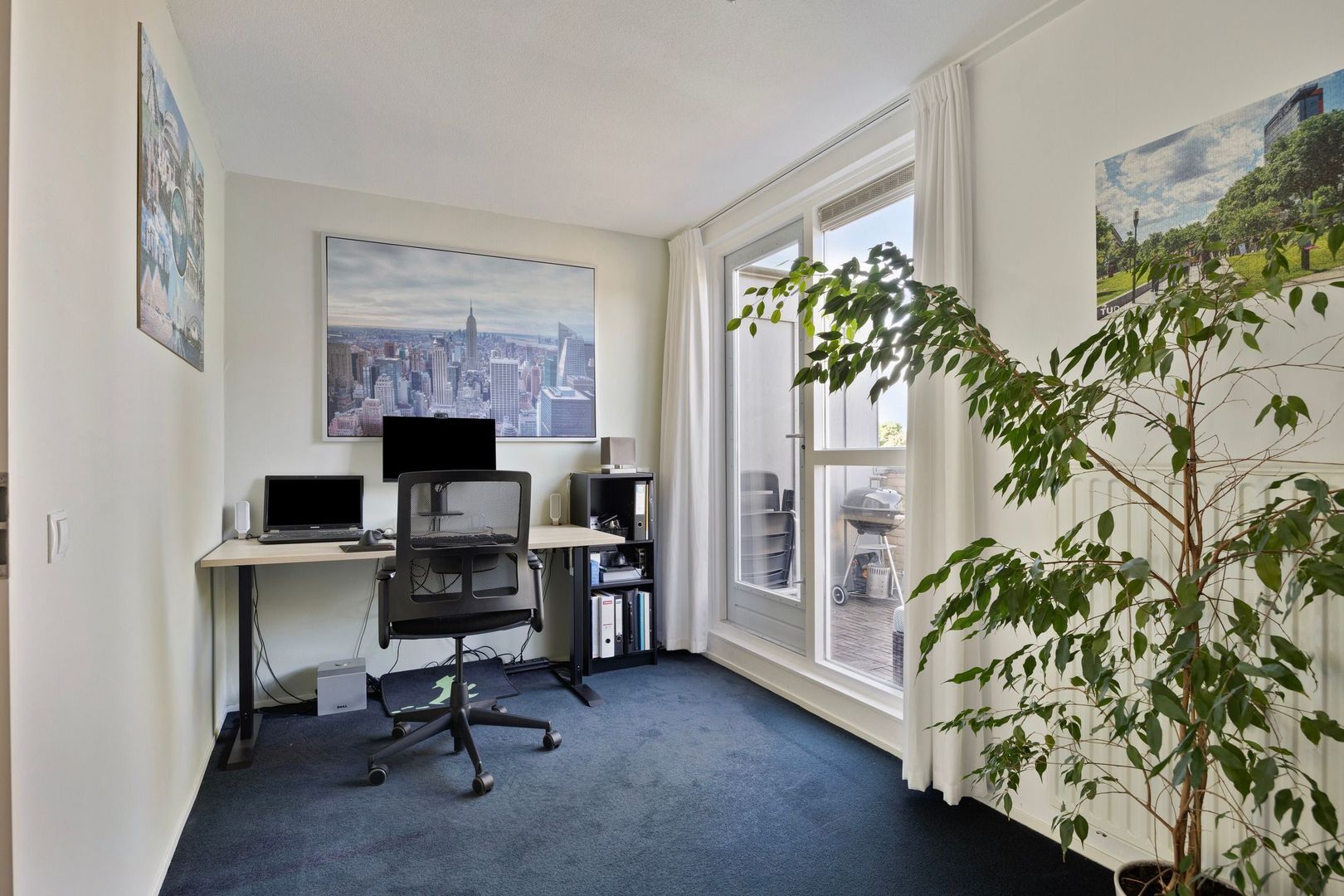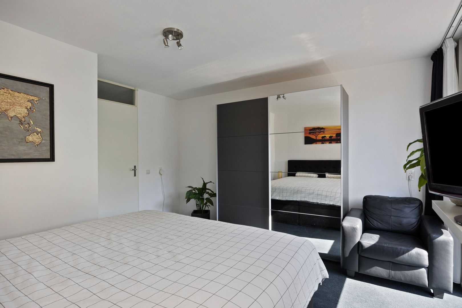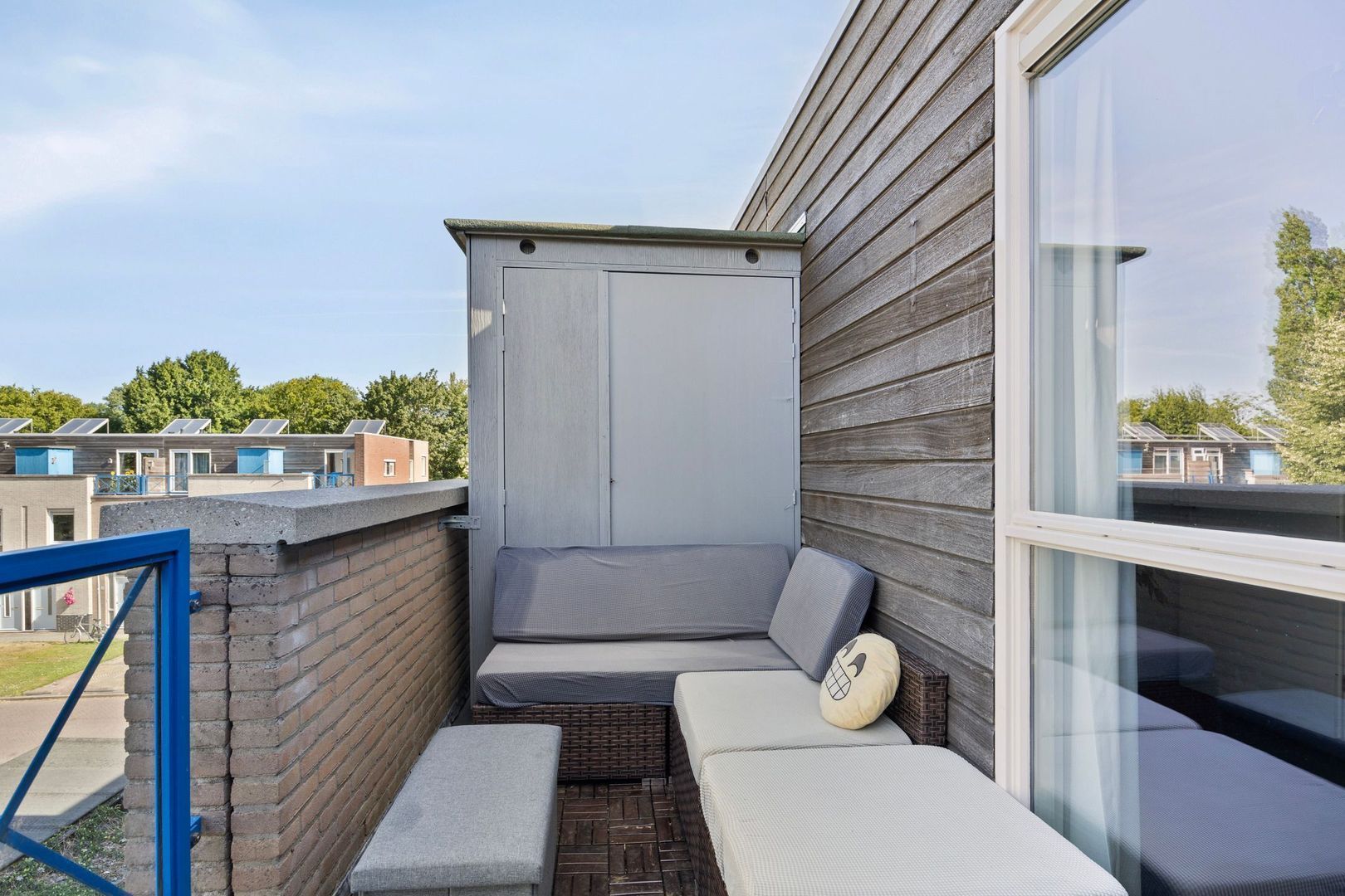 De slaapkamer aan de achterzijde geeft toegang tot het balkon, dat op het zuidwesten ligt. Hier is het heerlijk zitten in de middag- en avondzon. Op het balkon is een bergkast aanwezig voor extra opbergruimte.