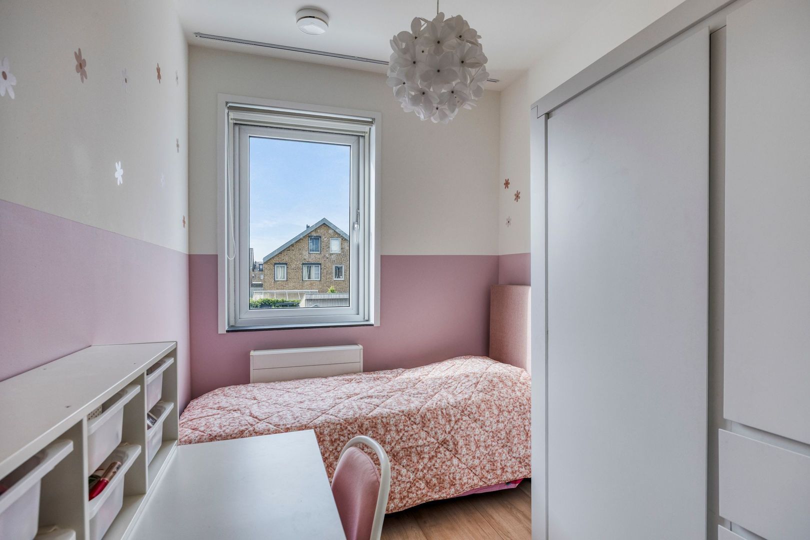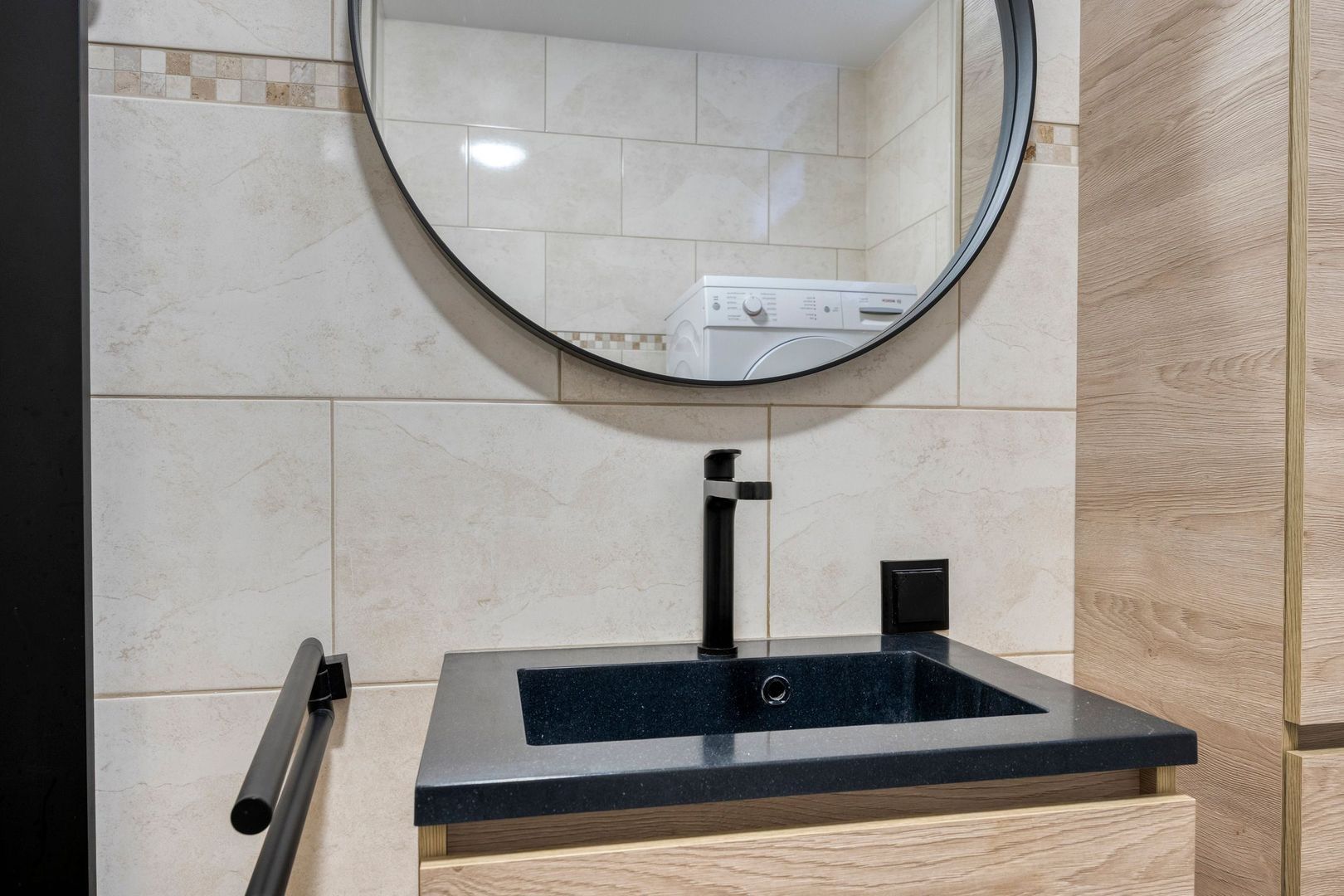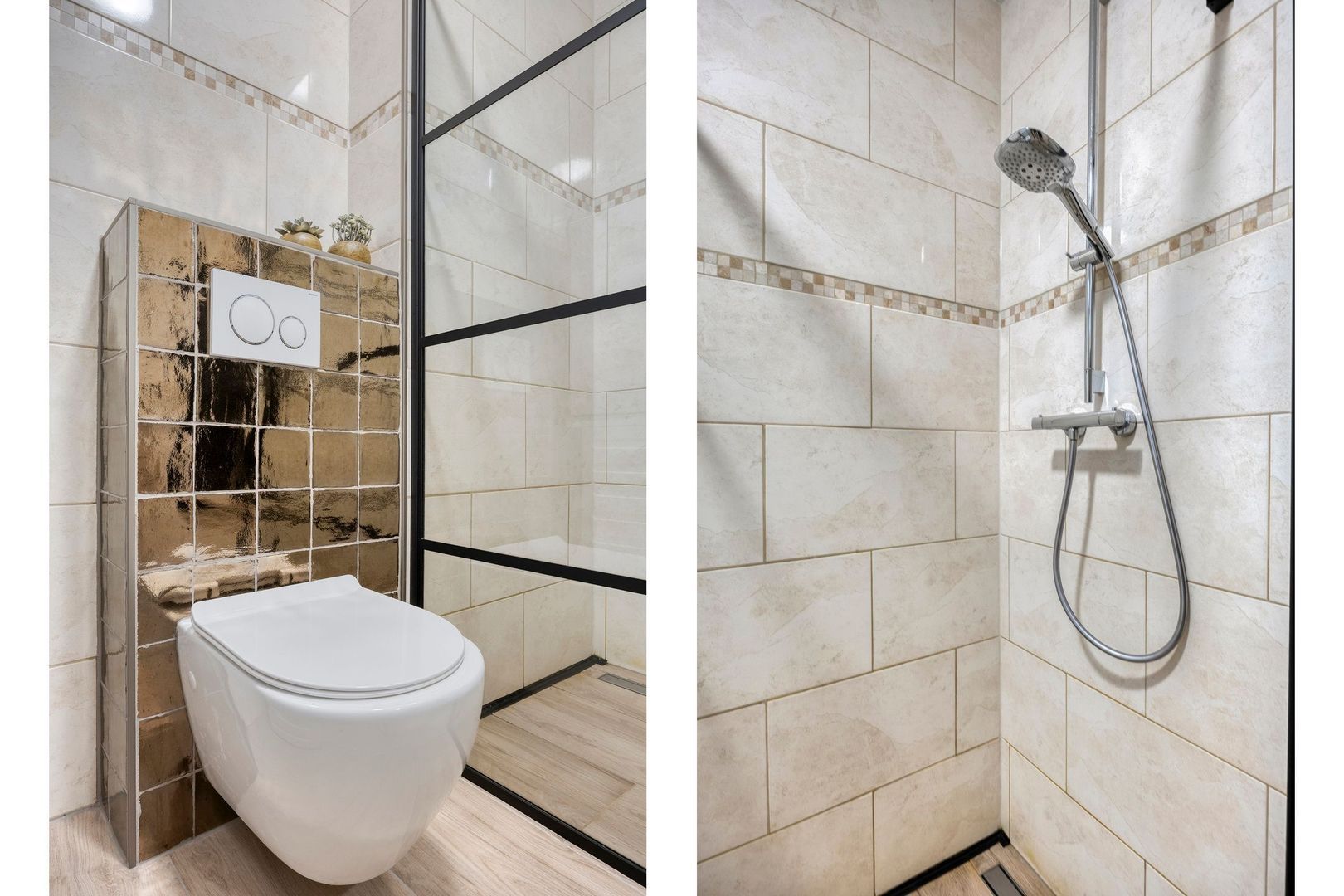 Geheel betegelde badkamer voorzien van een douche, vaste wastafelmeubel, 2e toilet en aansluiting wasmachine en droger. Slaapkamer aan de voorzijde is voorzien van een Frans balkon, twee slaapkamers aan de achterzijde. Deze beide slaapkamers zijn voorzien van horren.