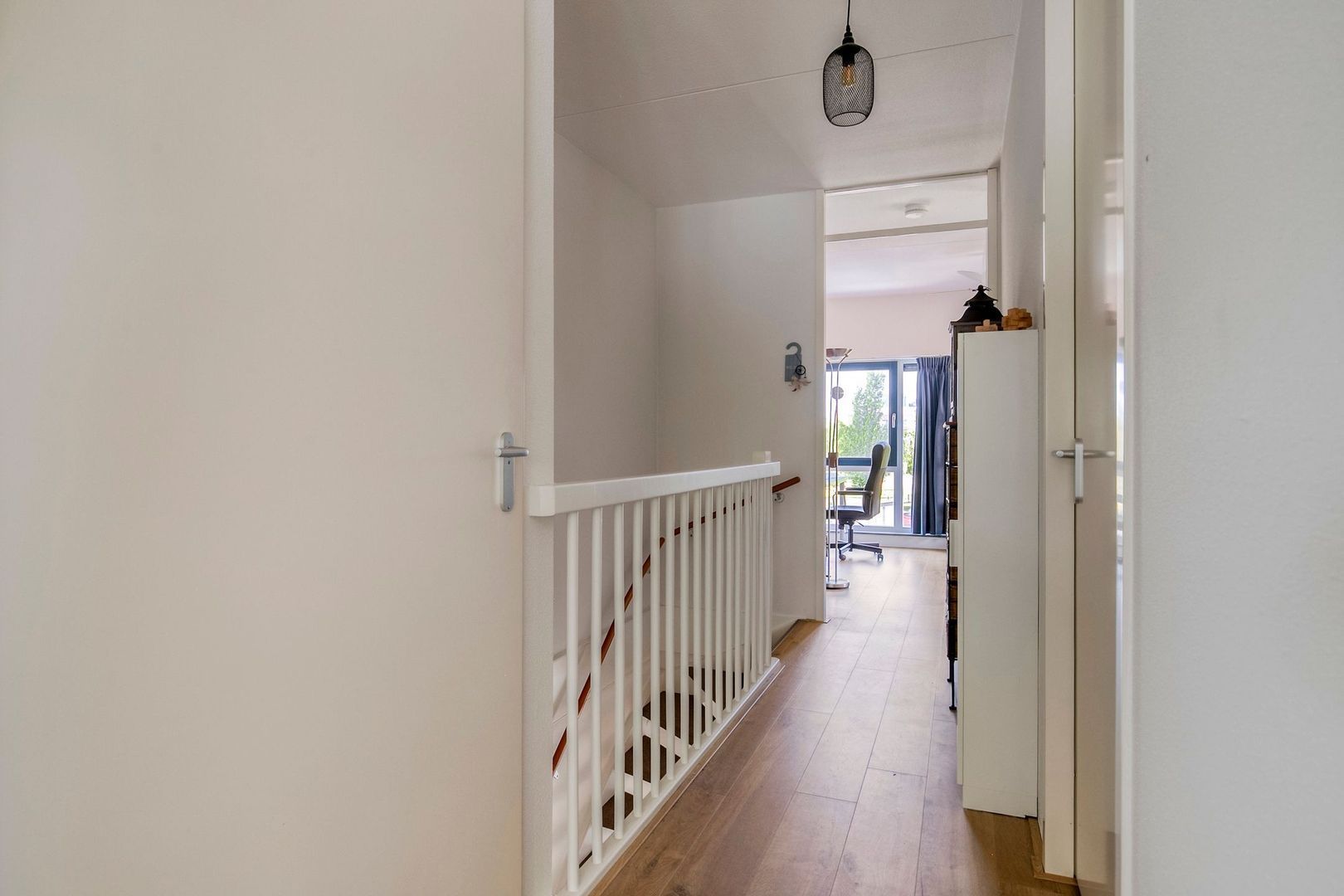 Overloop met toegang tot twee slaapkamers, een separaat toilet, een vaste kast met aansluiting voor wasmachine en droger en de badkamer.