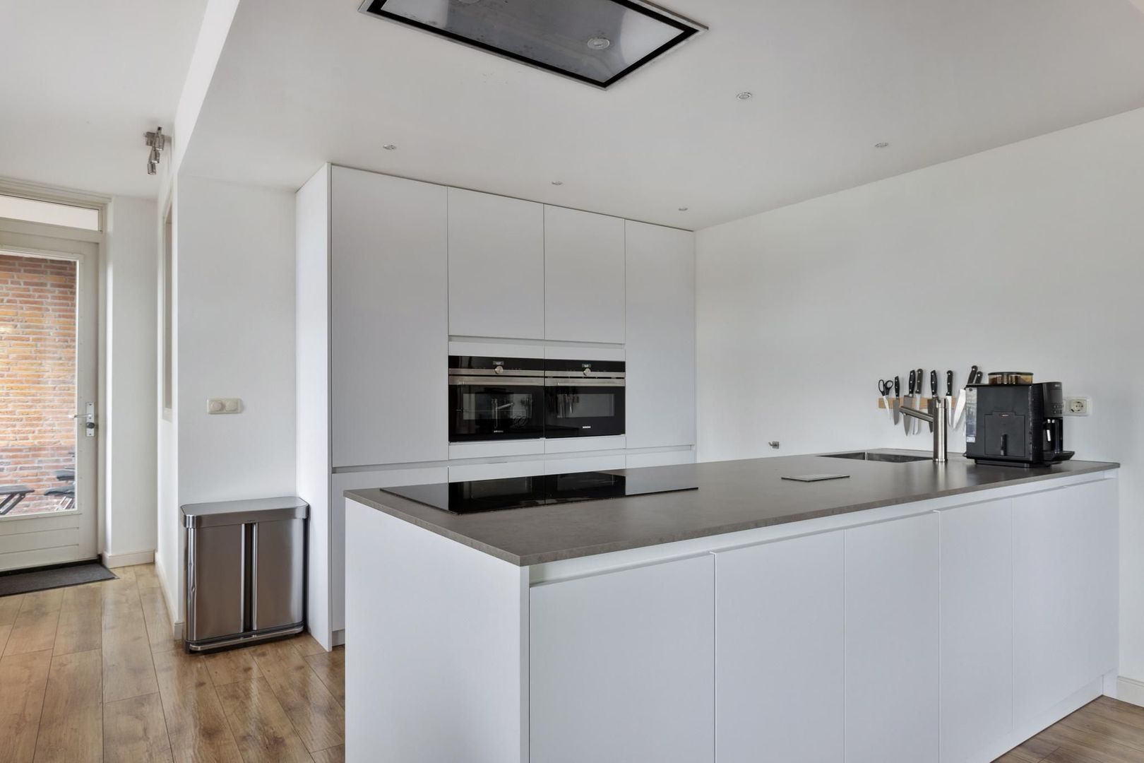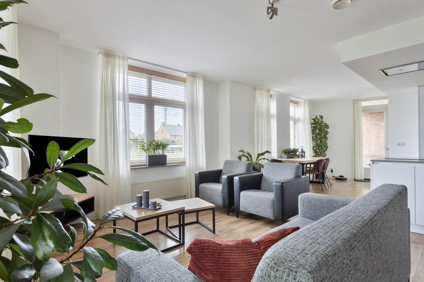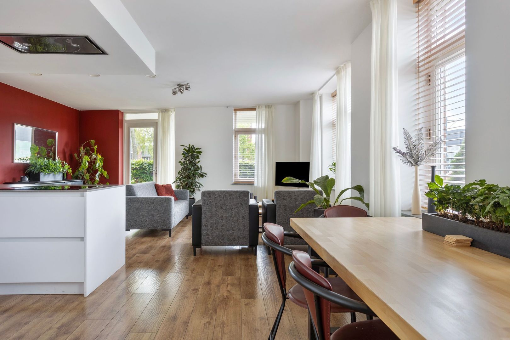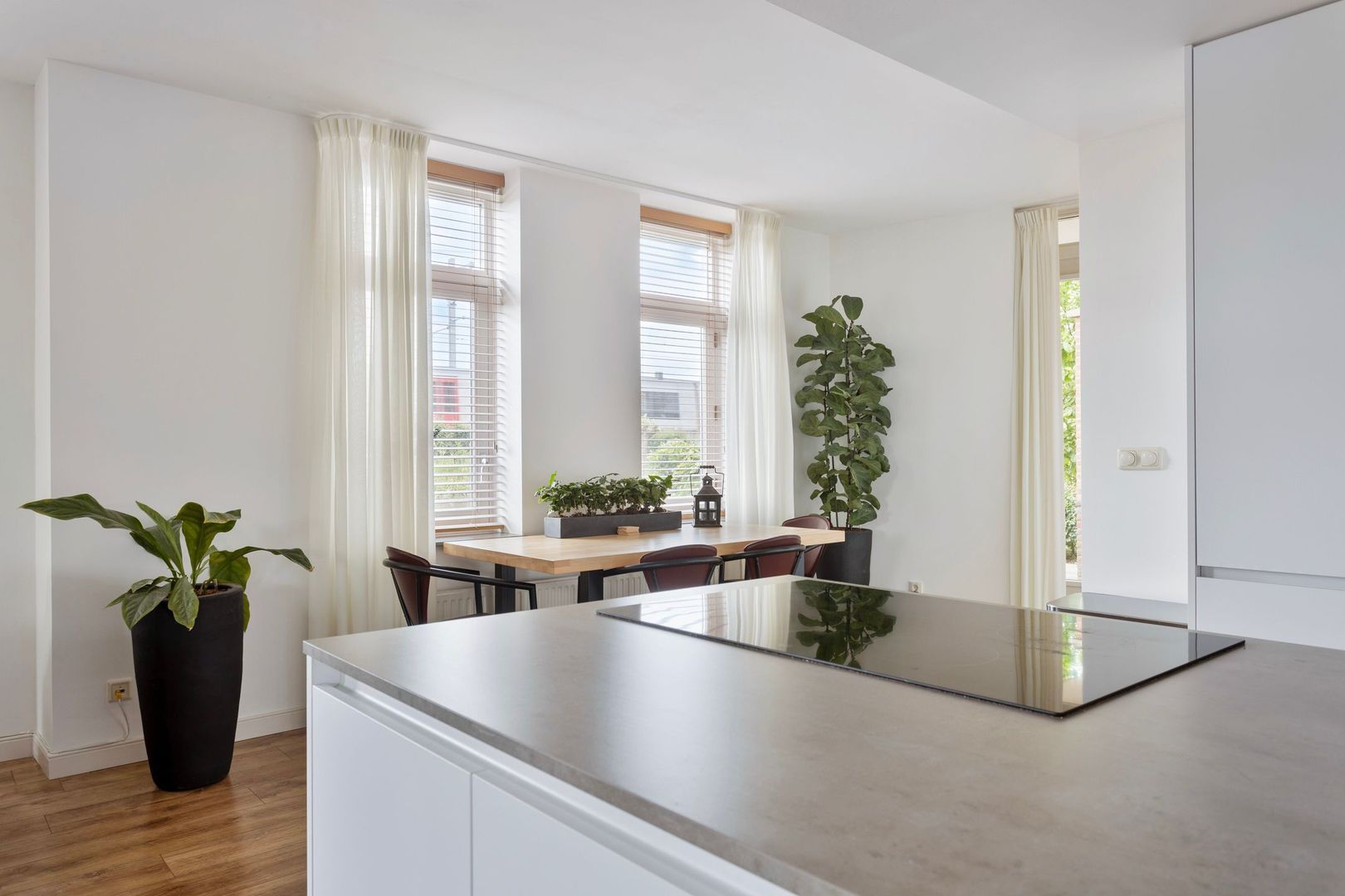 De ruime lichte woonkamer heeft grote raampartijen, wat zorgt voor veel daglicht. De moderne open keuken is uitgerust met een vaatwasser, inductiekookplaat, koel-vriescombinatie, oven, magnetron en afzuigkap.