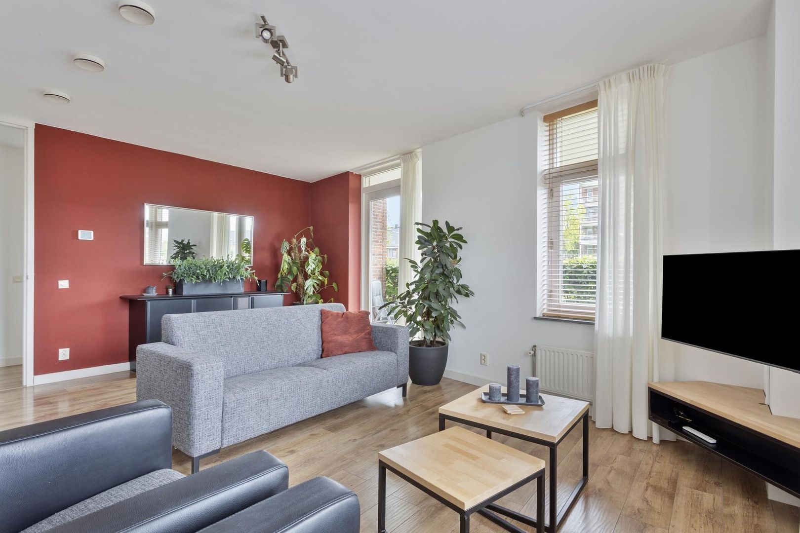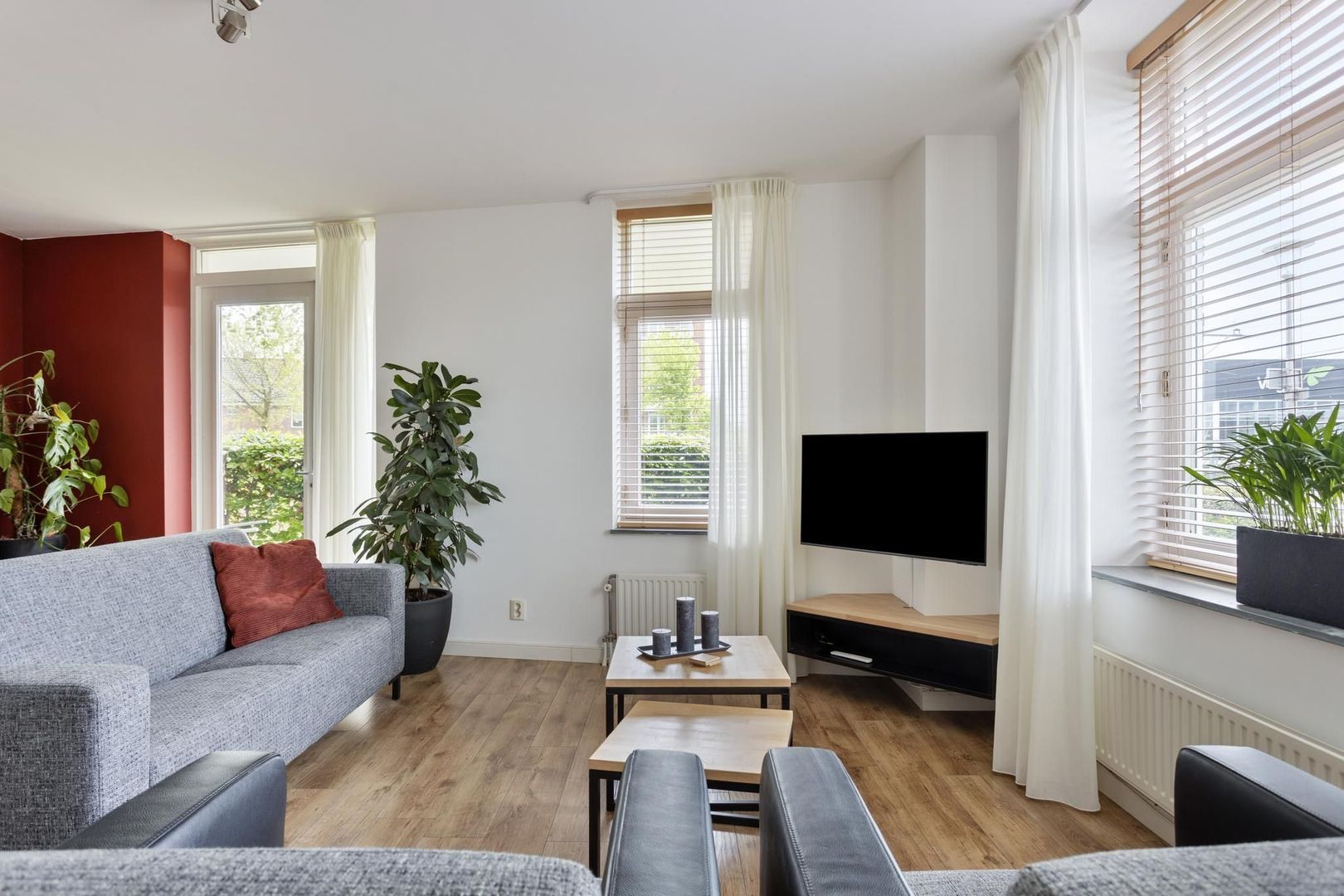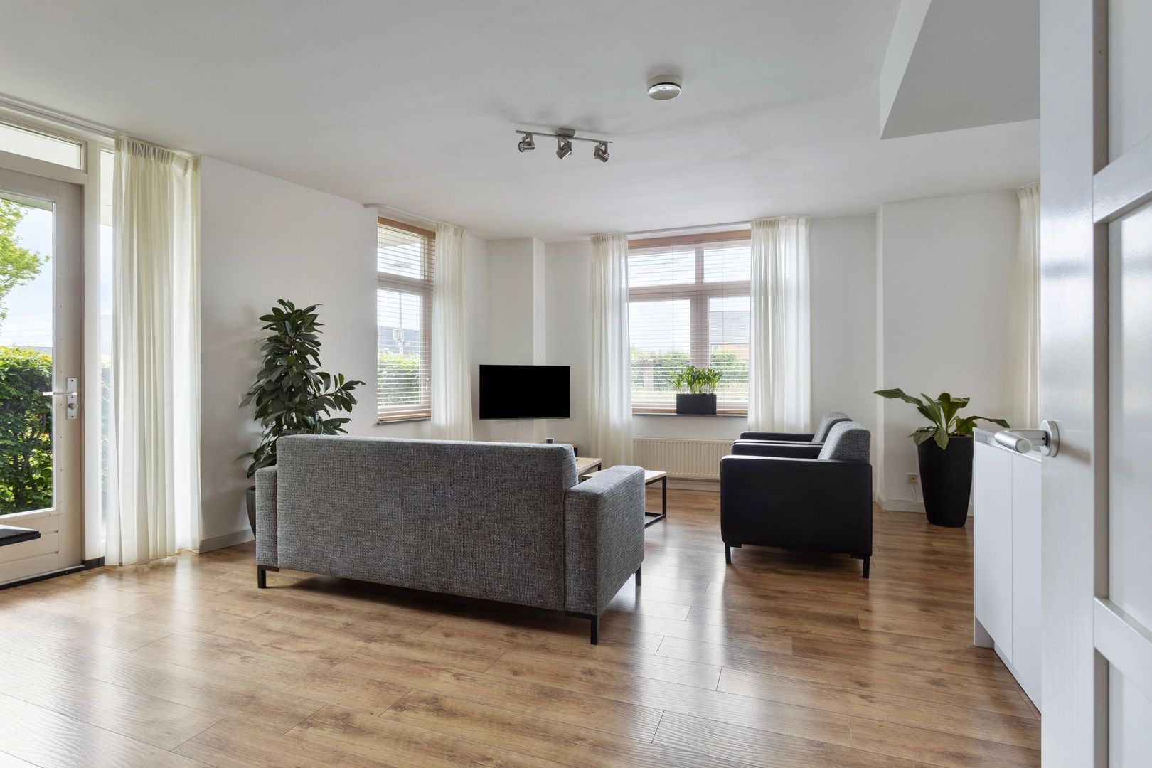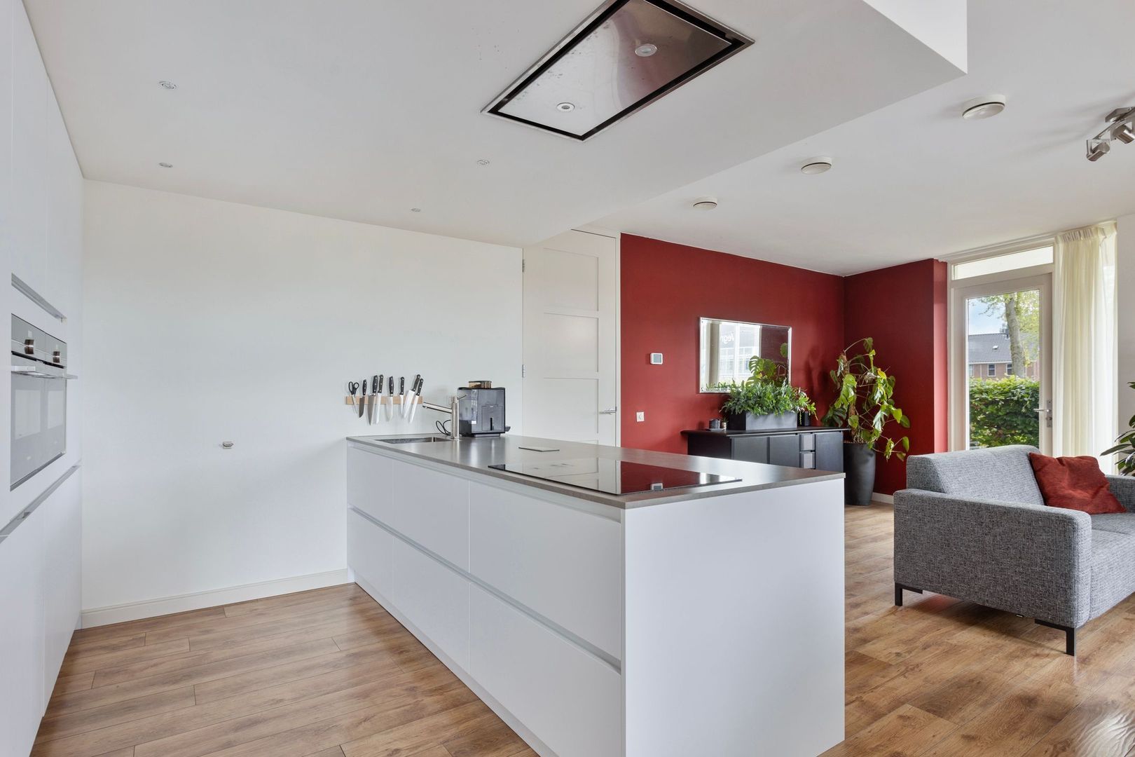 De ruime lichte woonkamer heeft grote raampartijen, wat zorgt voor veel daglicht. De moderne open keuken is uitgerust met een vaatwasser, inductiekookplaat, koel-vriescombinatie, oven, magnetron en afzuigkap.