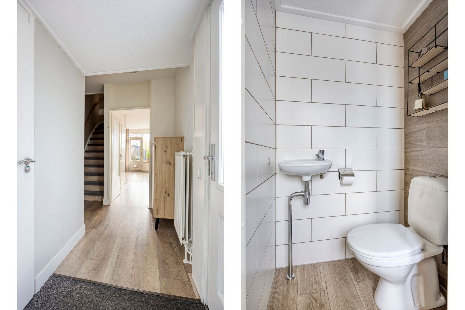Entree/ hal met meterkast, toilet, trapopgang naar de eerste verdieping, toegang tot de woonkamer en speelkamer.