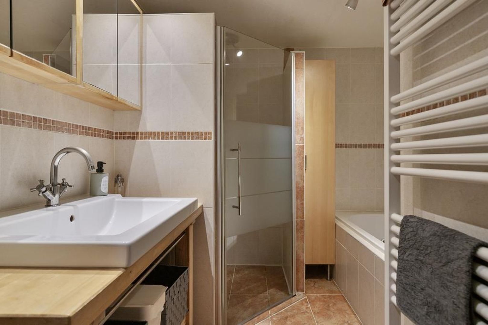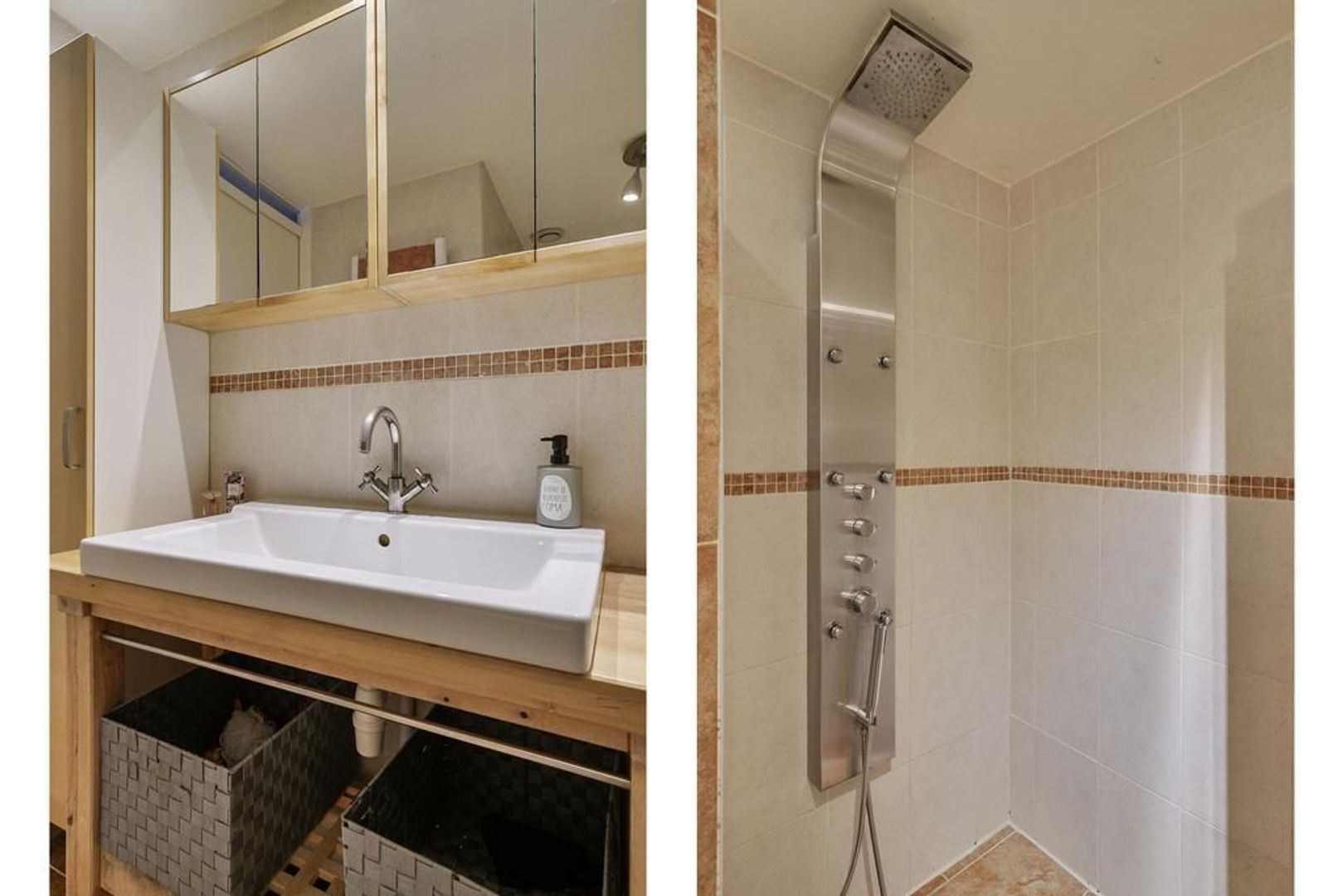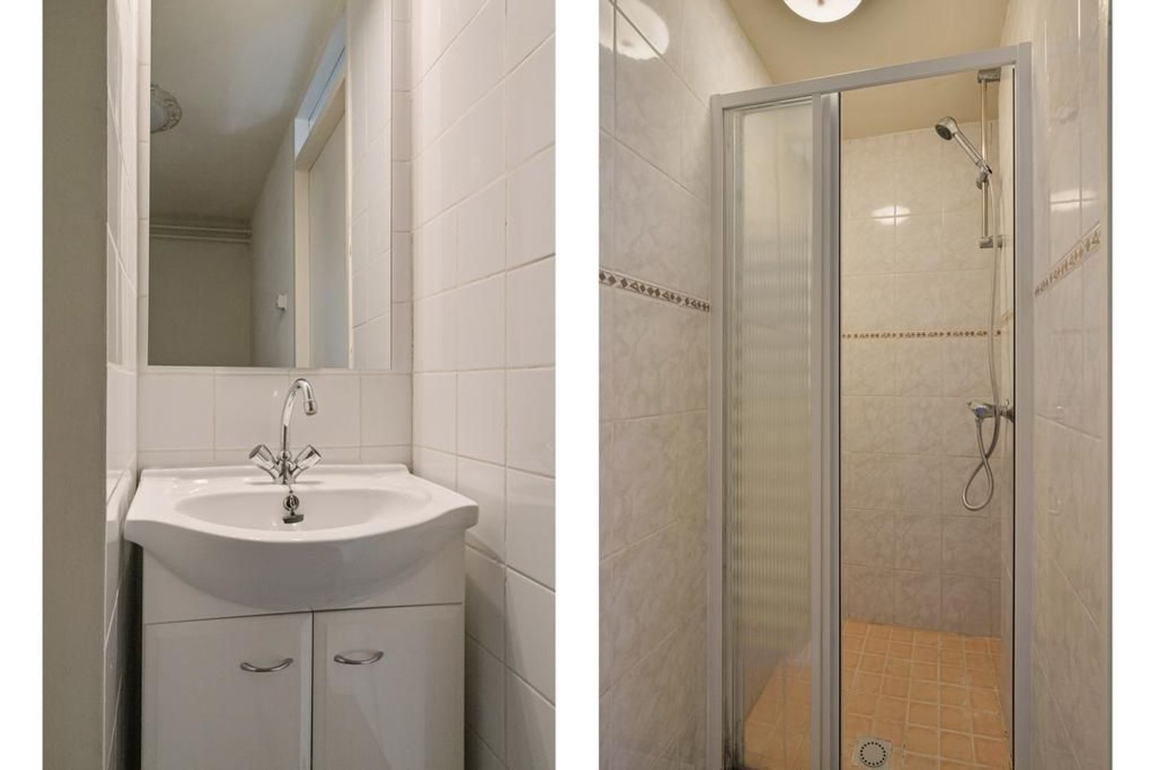 Overloop, met opstelplaats voor de cv-ketel, wastafel, een aparte douche en geeft toegang tot de 2 slaapkamers.