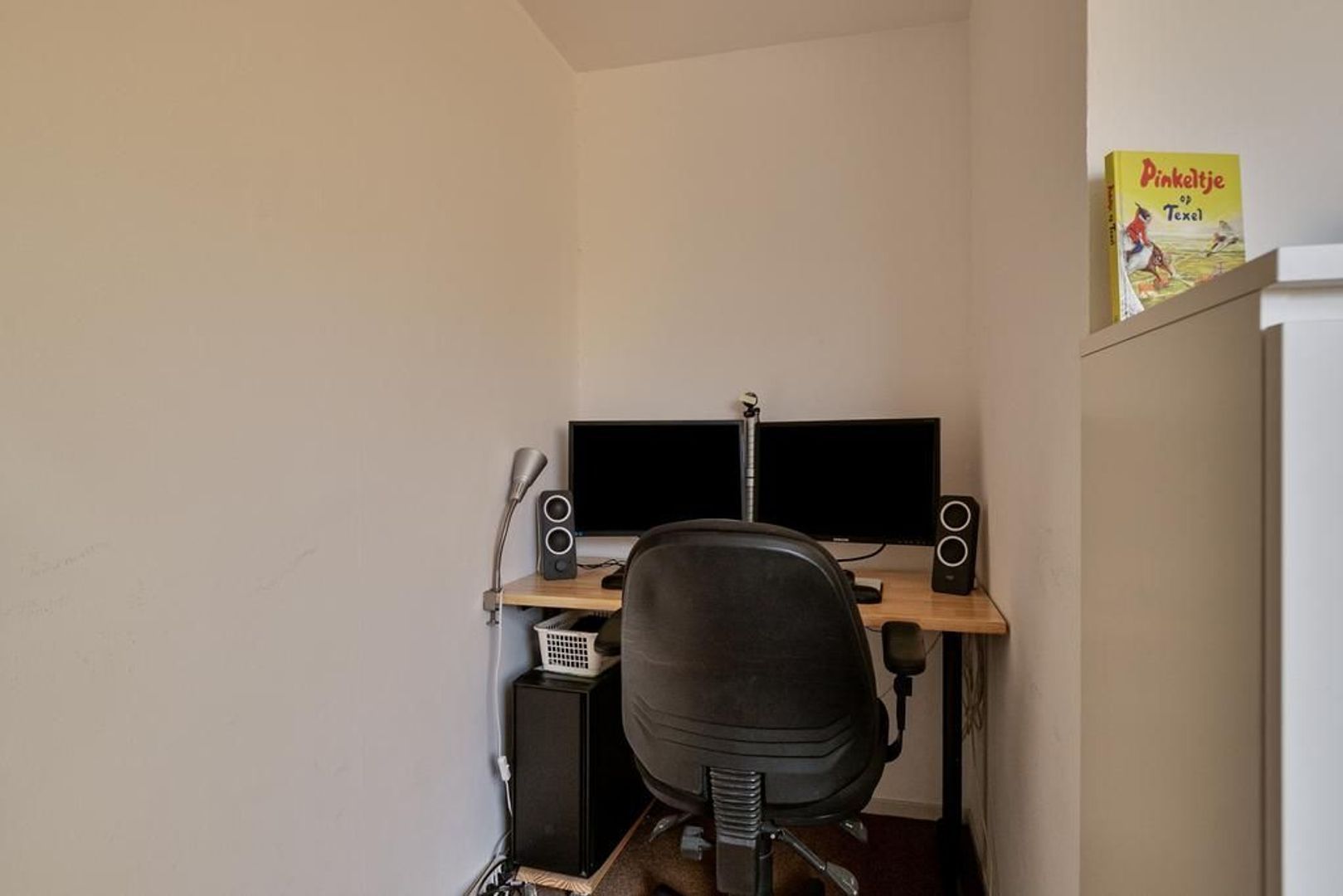 1 slaapkamer bevindt zich aan de voorzijde van de woning en is voorzien van een vast bed met extra bergruimte. Ook hier is het openklapraam recent vervangen en heeft nu HR++ glas.