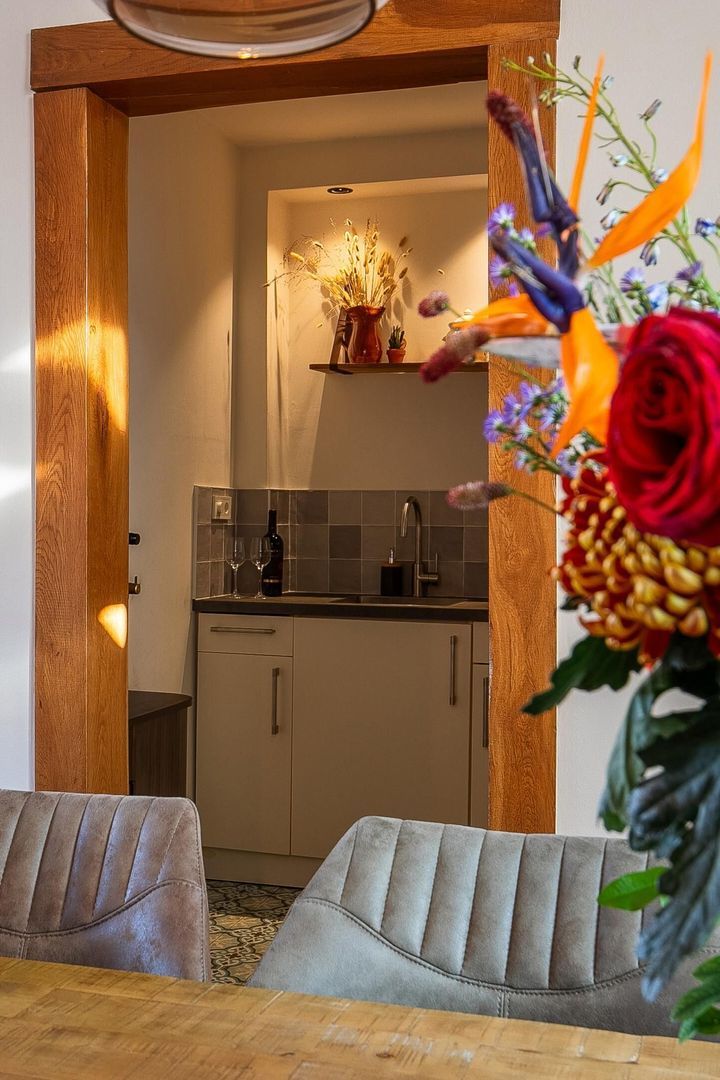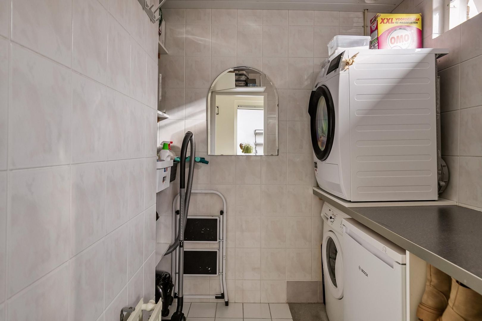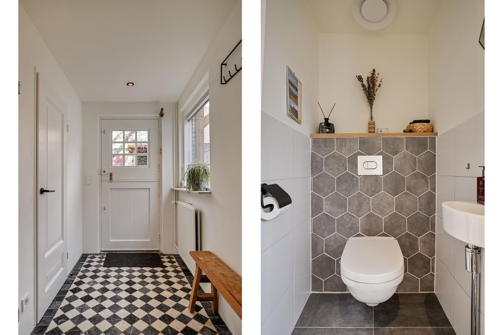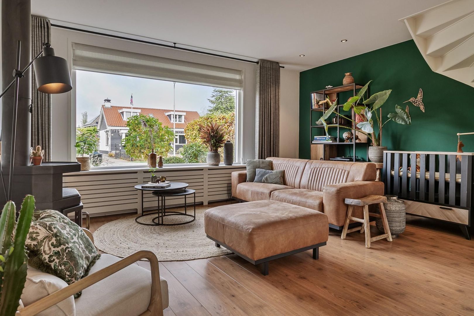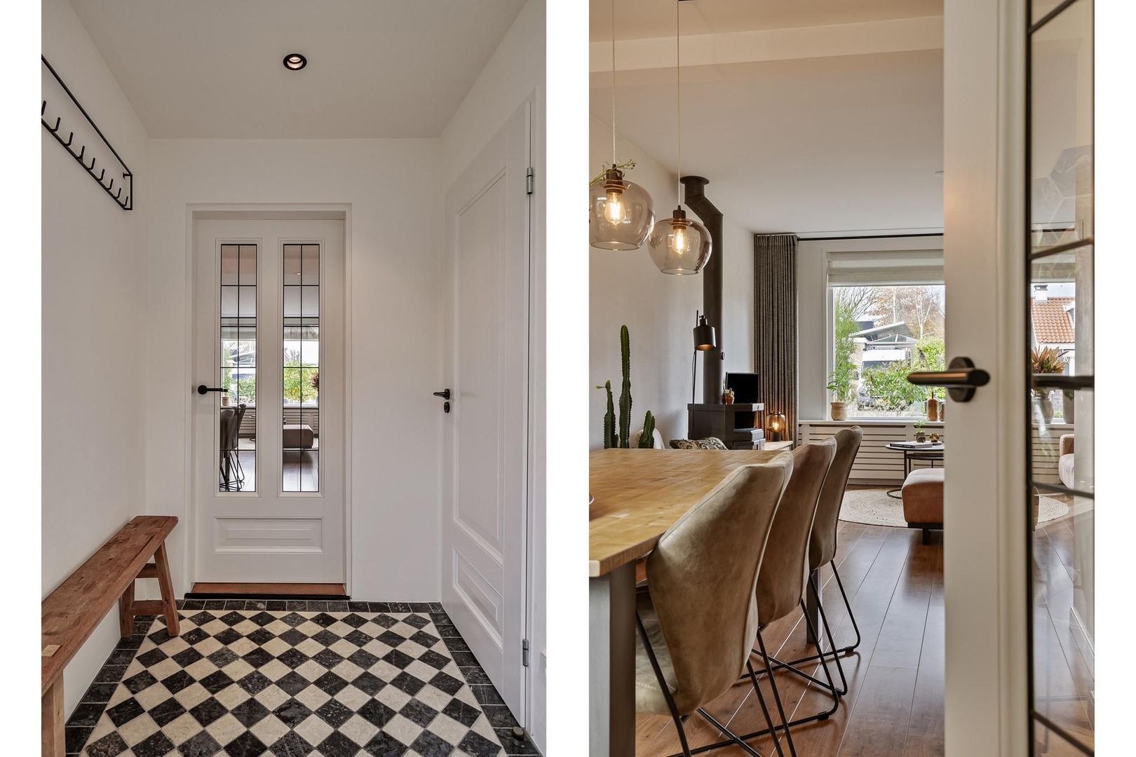 Hal/Entree via de achtertuin, in de hal bevindt zich het toilet en bijkeuken met wasmachine en droger aansluiting. Via de hal kom je in de heerlijk lichte woonkamer, voorzien van een houtkachel en een mooie laminaat vloer.
