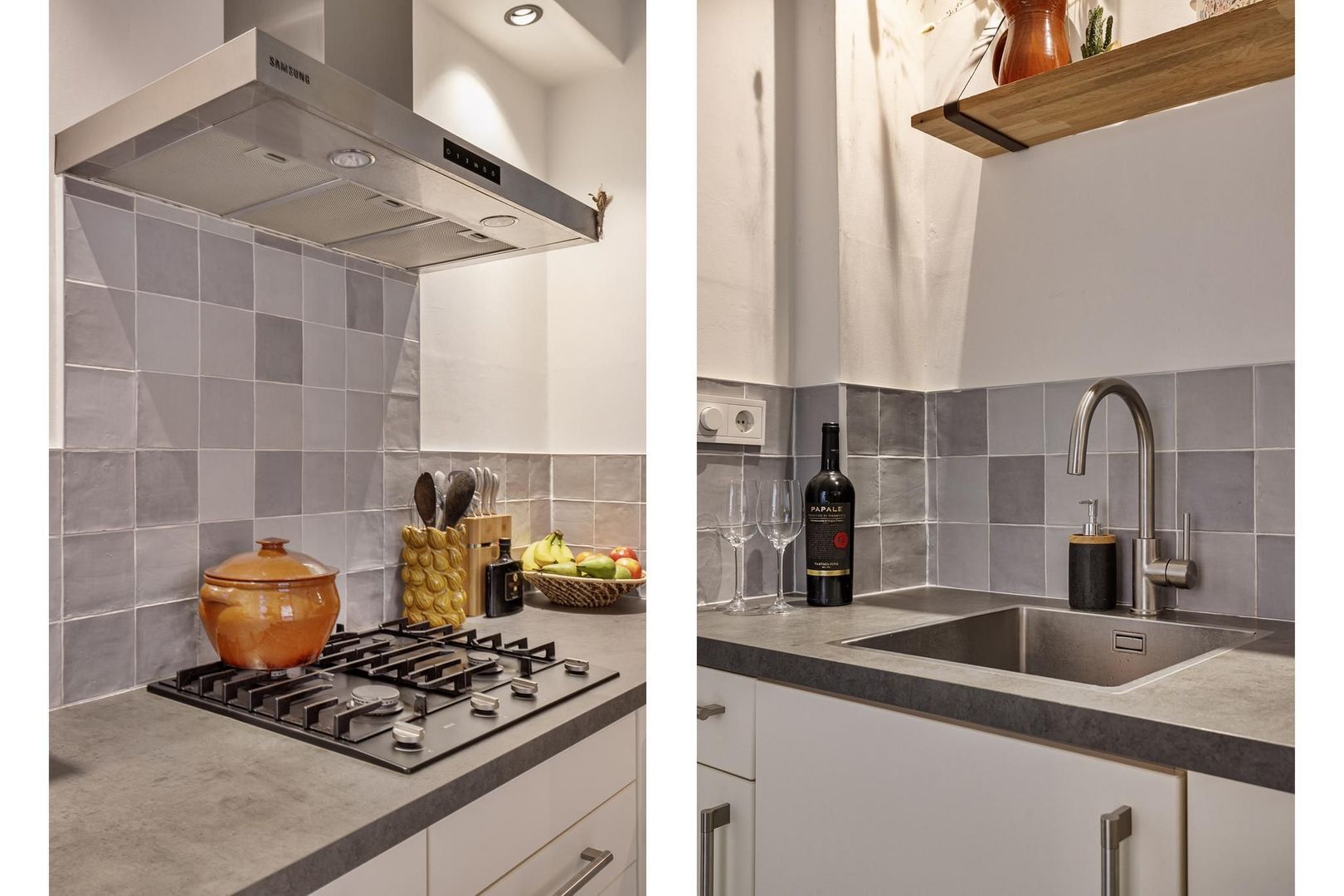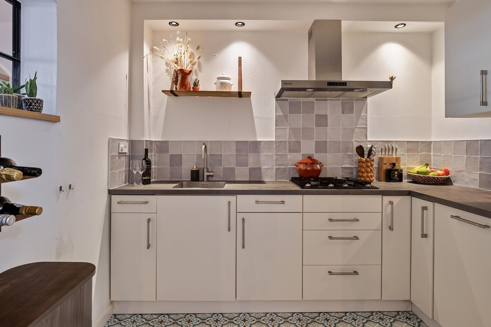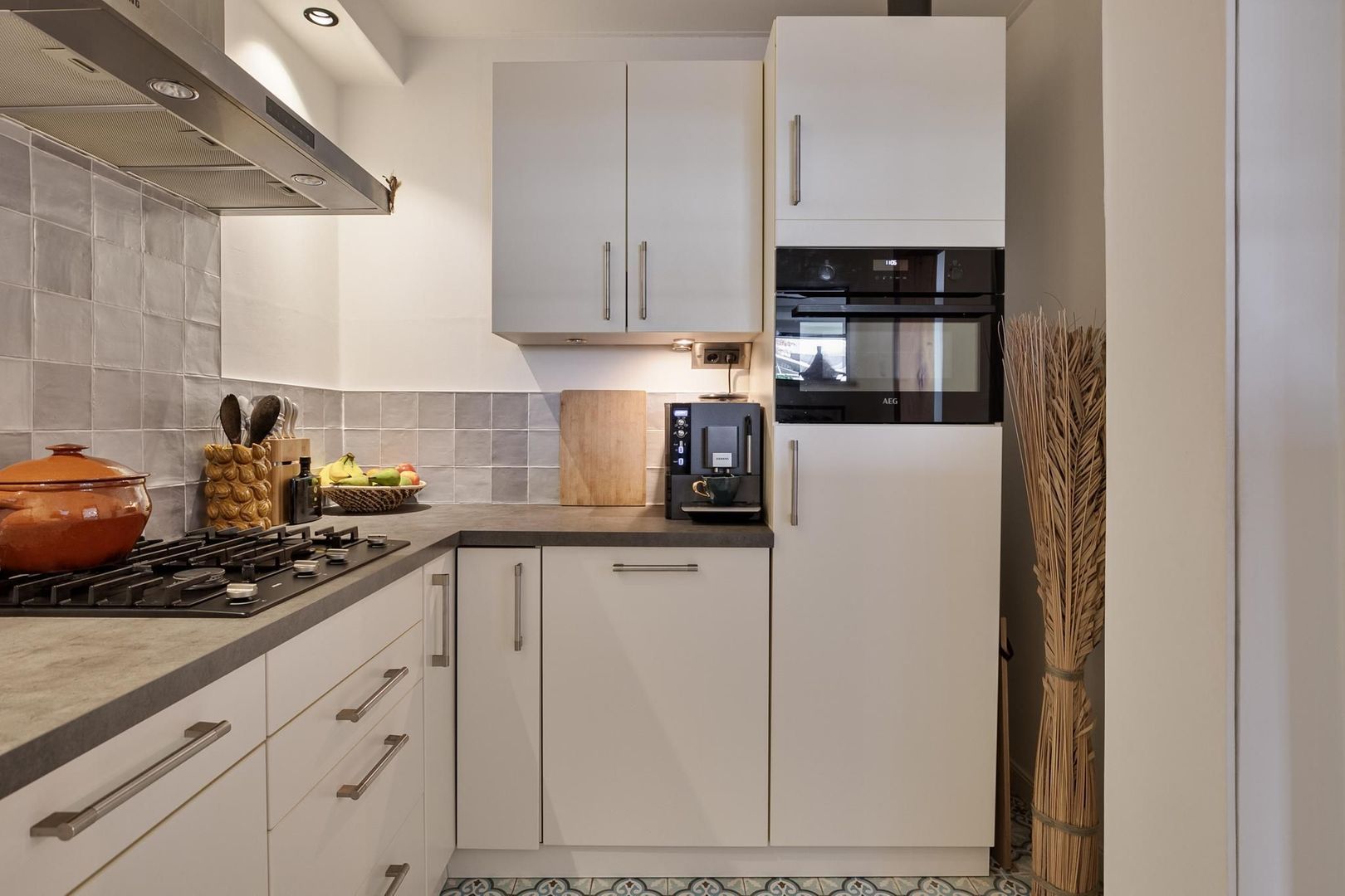 De dichte L vormige keuken is voorzien van een vaatwasser, 4 pits gasfornuis, koelkast, combi oven, afzuigkap en spoelbak met mengkraan, in de keuken bevindt zich ook de meterkast.