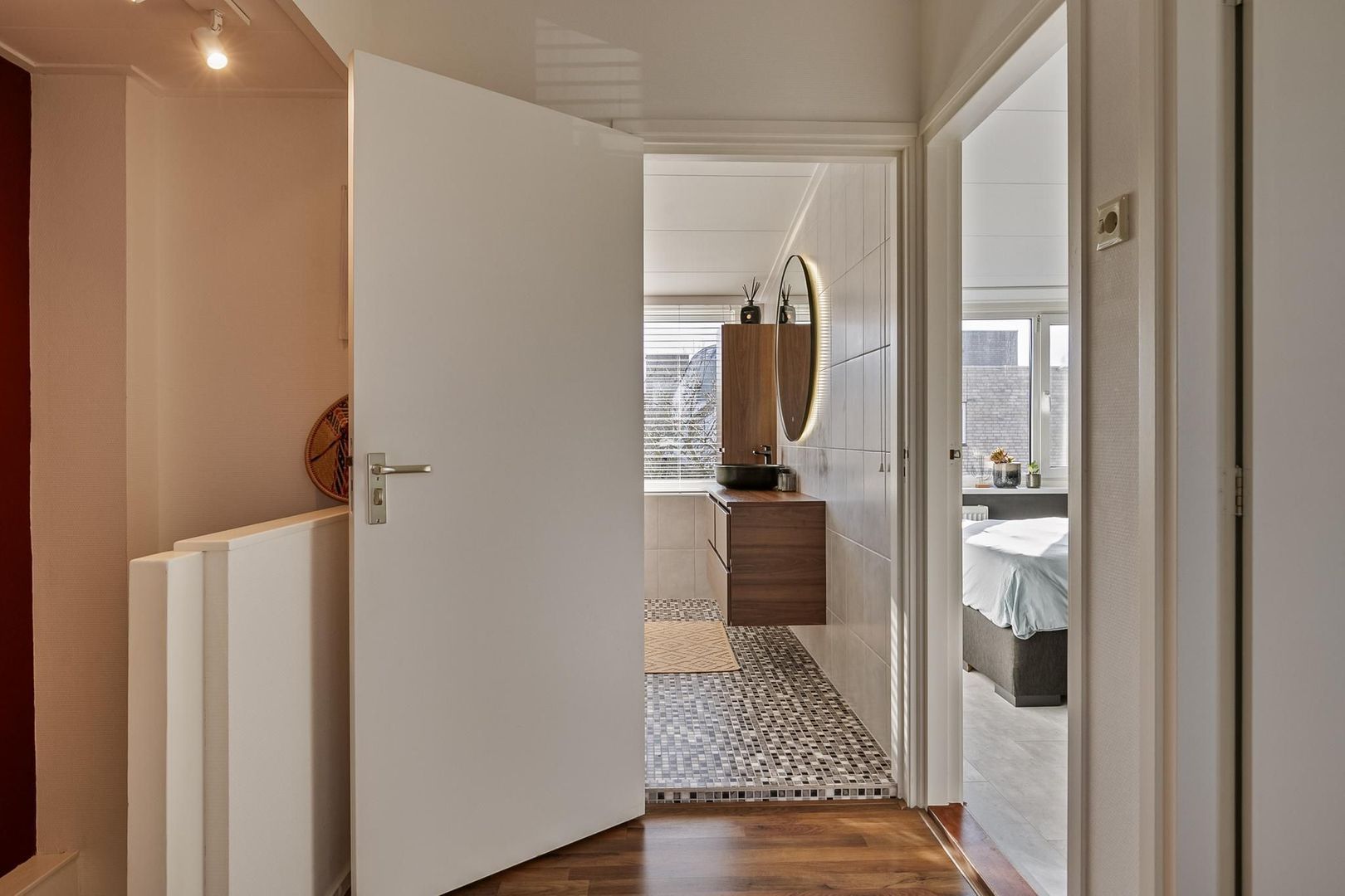 De overloop geeft toegang tot 3 slaapkamers en de badkamer. Ook geeft de overloop toegang middels een vlizotrap naar de vliering, hier is de opstelplaats voor de cv ketel en biedt veel opbergruimte.
