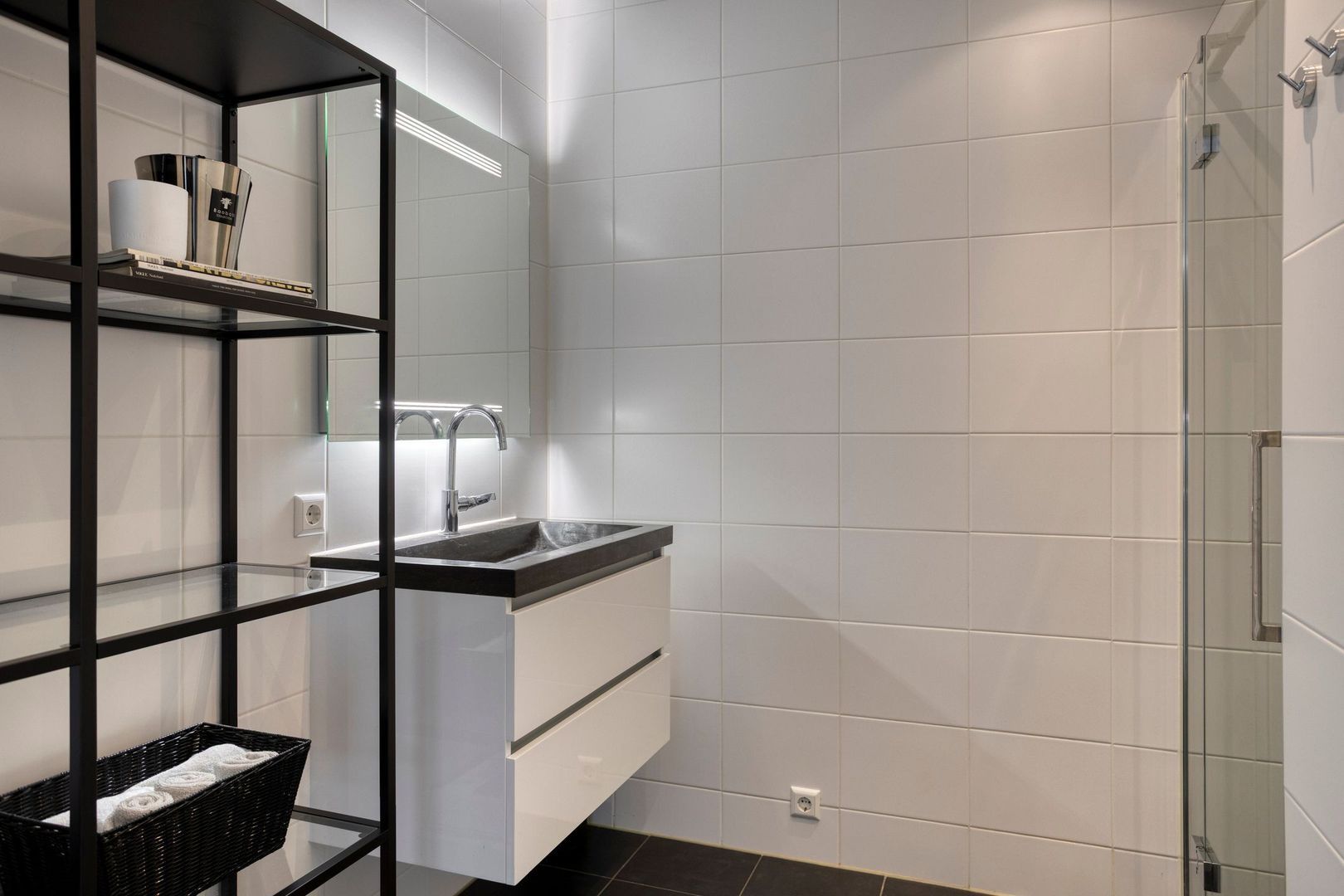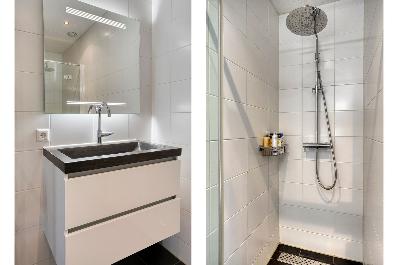 De badkamer is volledig betegeld en voorzien van een royale inloopdouche en een wastafel met meubel. Verder zijn er 2 ruime slaapkamers (ca. 14m2 en ca. 8,5m2) met onder andere uitzicht op de binnentuin. Tot slot treft u naast het aparte toilet een ruimte met de opstelling van de WKO (warmte-koude opslag) systeem, wasmachine/droger en extra opbergruimte.