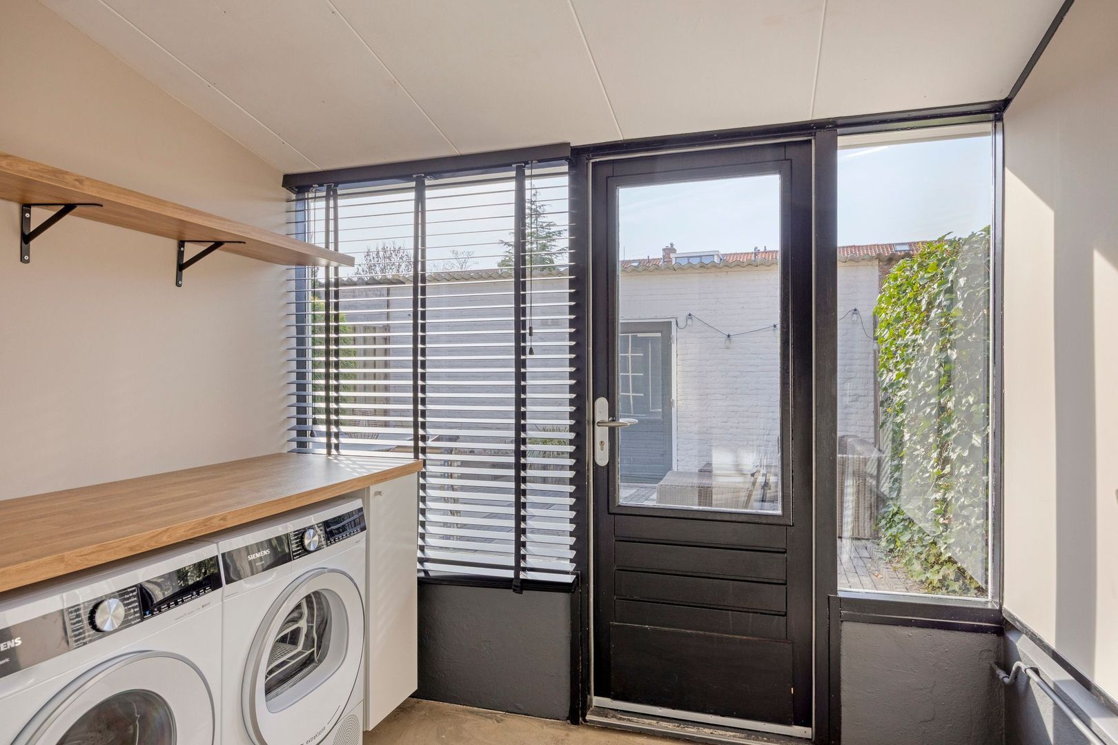 Vanuit de keuken is er toegang tot de bijkeuken, waar zich de aansluitingen voor de wasmachine en droger bevinden. Ook vanuit hier is de achtertuin bereikbaar.