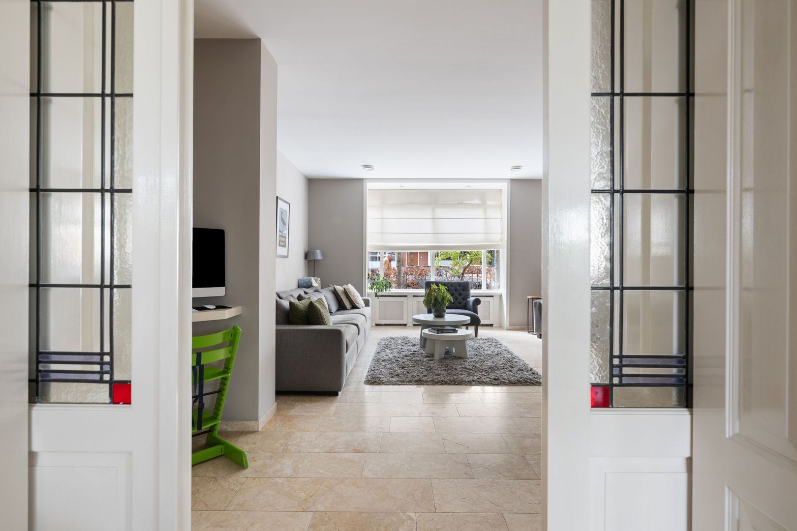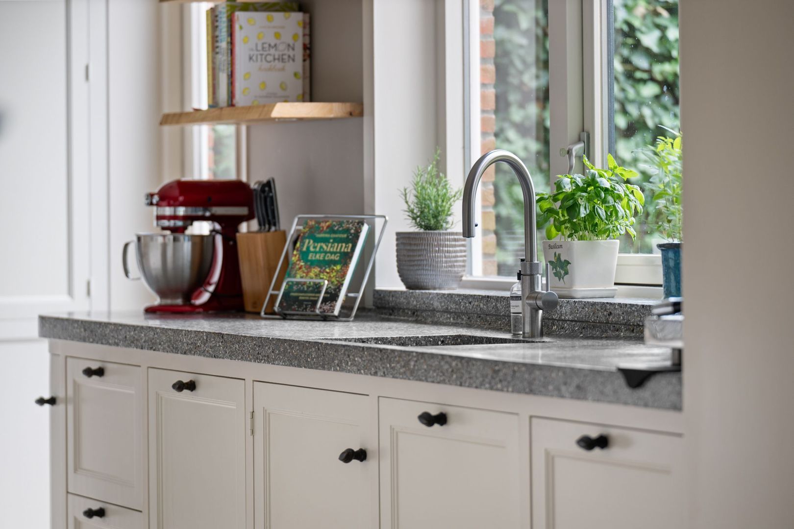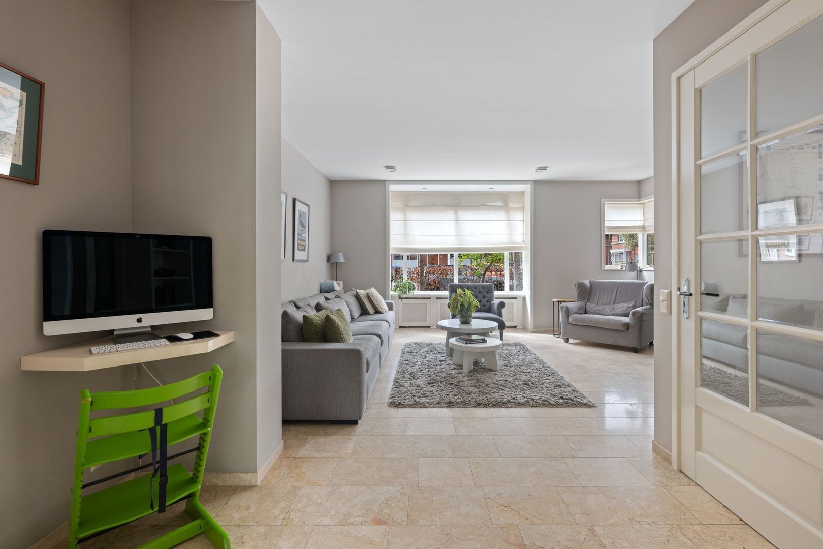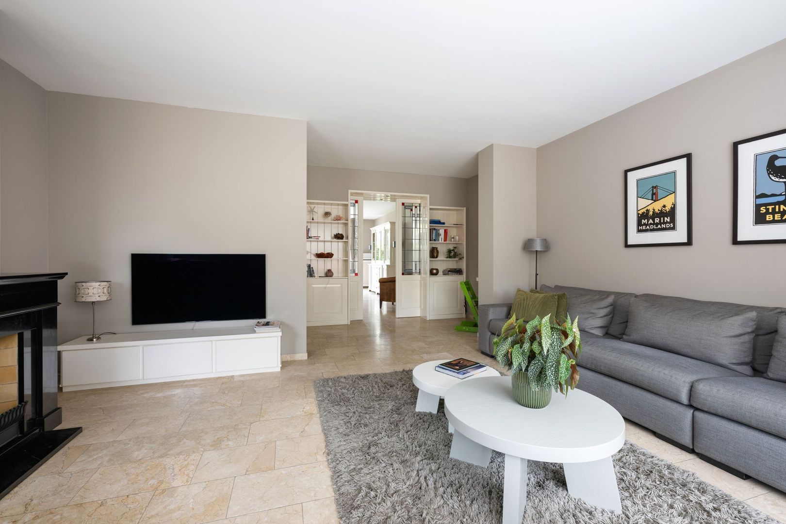 De sfeervolle woonkamer is licht en ruim opgezet. Het zitgedeelte, met een speelse erker, bevindt zich aan de voorzijde. Via en-suite deuren is de woonkamer verbonden met de eetkamer. De keuken is een waar paradijs voor kookliefhebbers, met het La Canche fornuis als stralend middelpunt. Dit fornuis bevat zowel een oven als een garingsoven. Verder is de keuken uitgerust met een koel-vriescombinatie, afzuigkap, Quooker, vaatwasser en een wijnkoelkast.