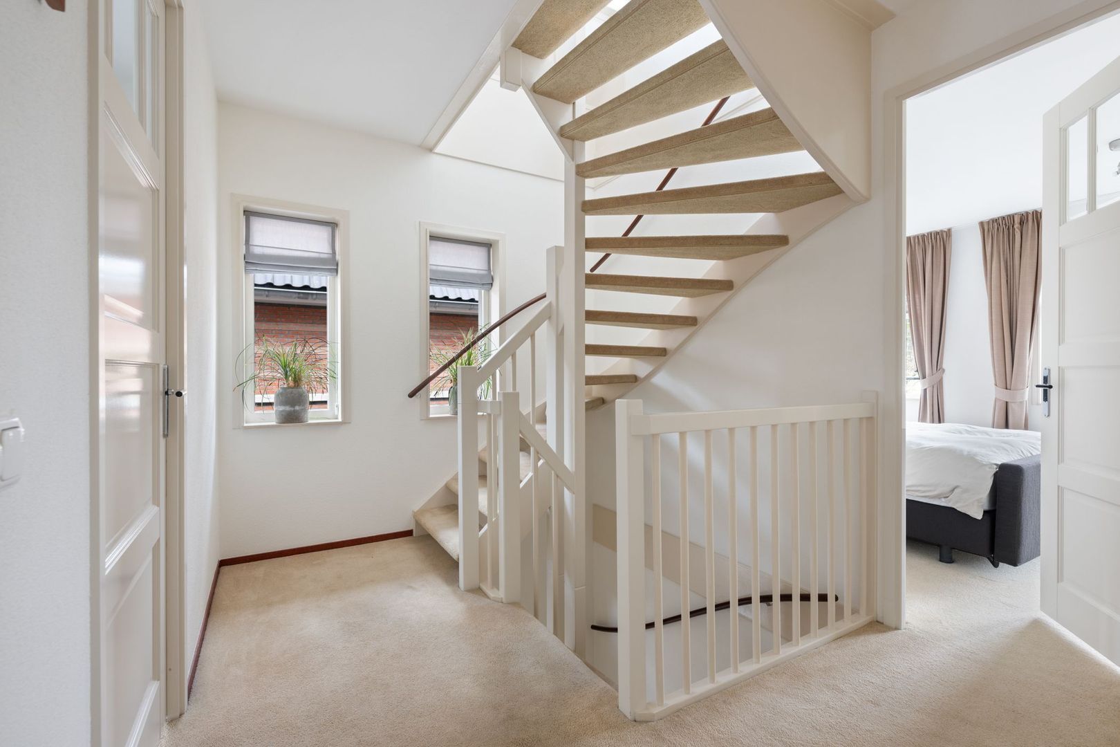 De overloop geeft toegang tot de drie slaapkamers, toilet en de badkamer.