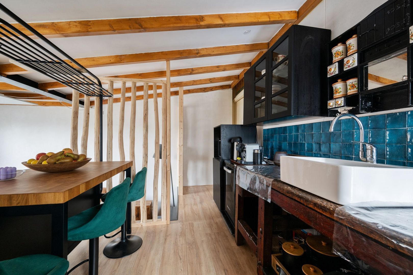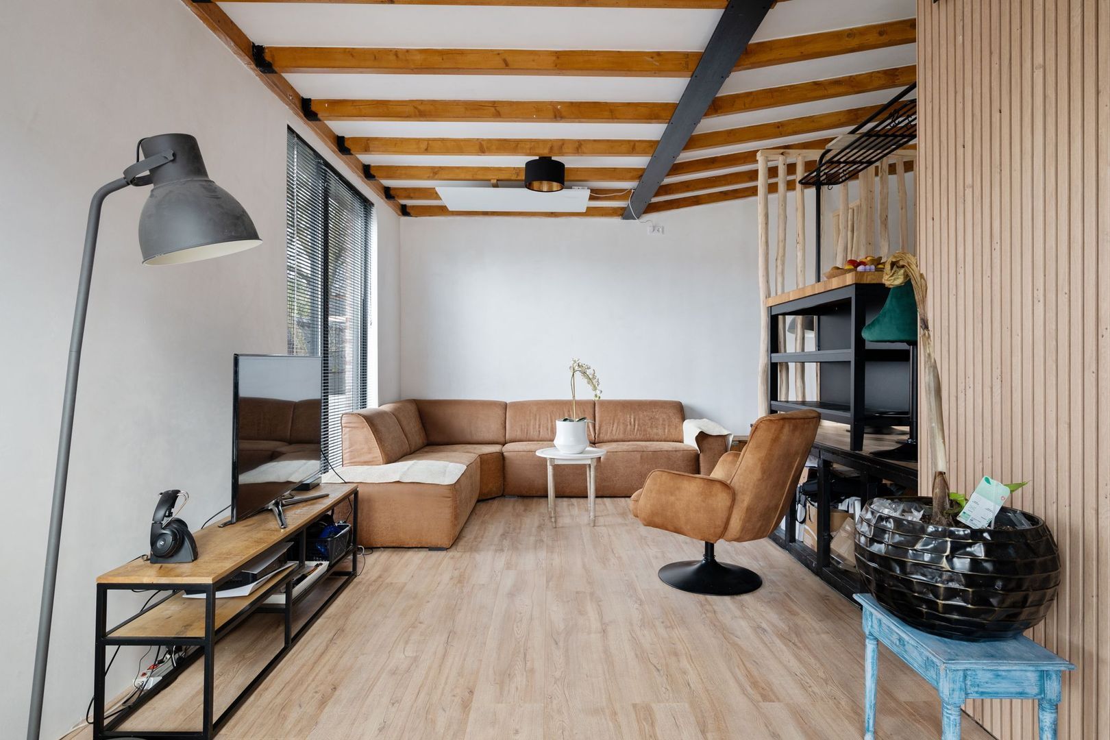 De slaapkamer kan eenvoudig worden omgetoverd tot woonkamer, de badkamer tot keuken, of juist andersom. Dankzij de gunstige ruimteverdeling en de reeds aanwezige aansluitingen zijn meerdere indelingsvarianten mogelijk. Zo creëer je precies de woonbeleving die bij jouw levensstijl past.
