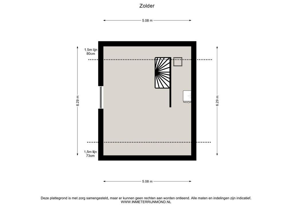 De woning is conform de Branchebrede Meetinstructie (BBMI) opgemeten. De Meetinstructie is bedoeld om een meer eenduidige manier van meten toe te passen voor het geven van een indicatie van de gebruiksoppervlakte. De Meetinstructie sluit verschillen in meetuitkomsten niet volledig uit, door bijvoorbeeld interpretatieverschillen, afrondingen of beperkingen bij het uitvoeren van de meting.