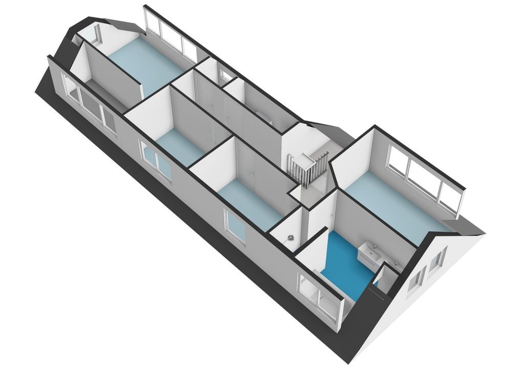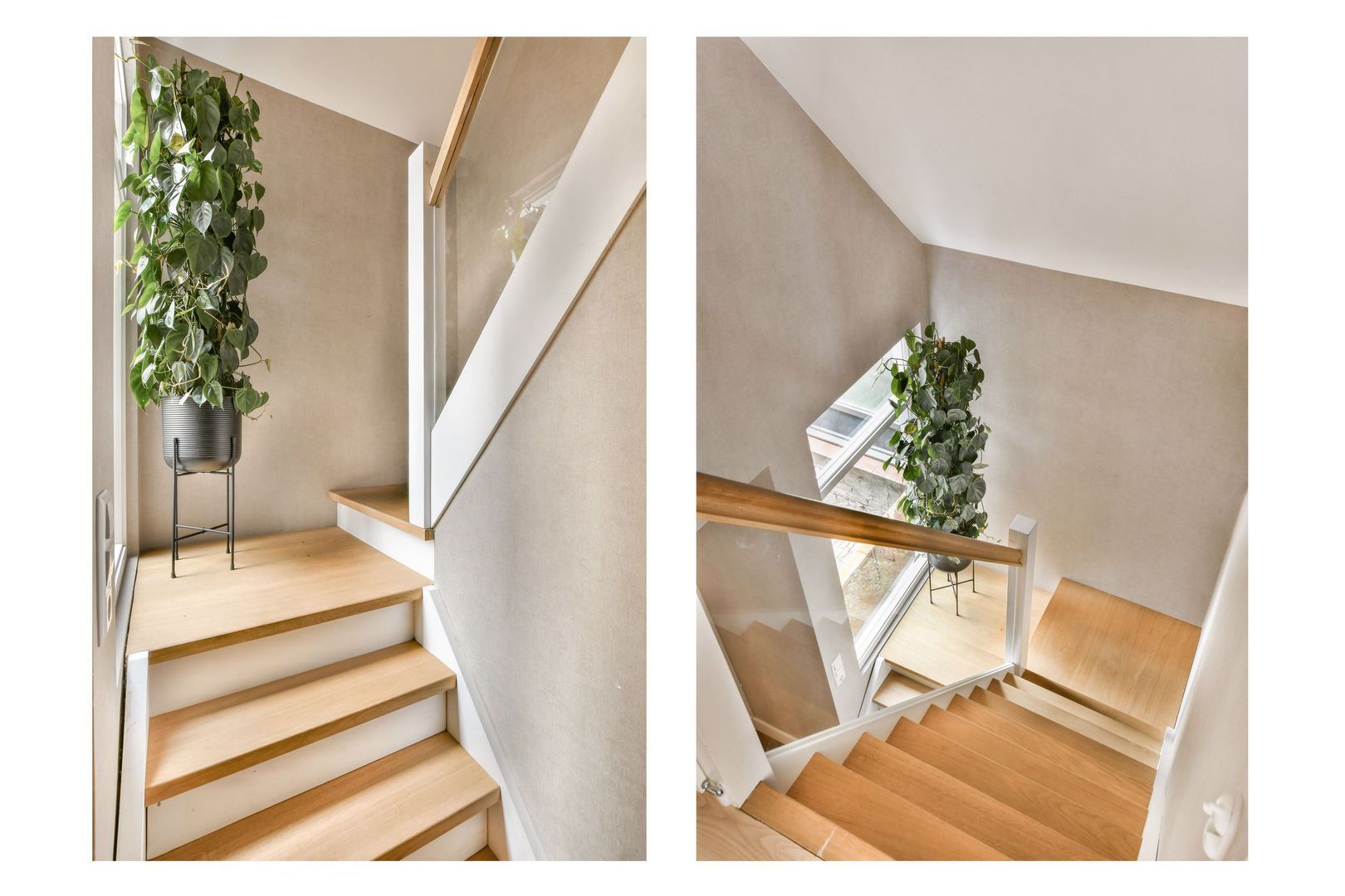 De gehele verdieping is netjes afgewerkt met een moderne laminaatvloer.