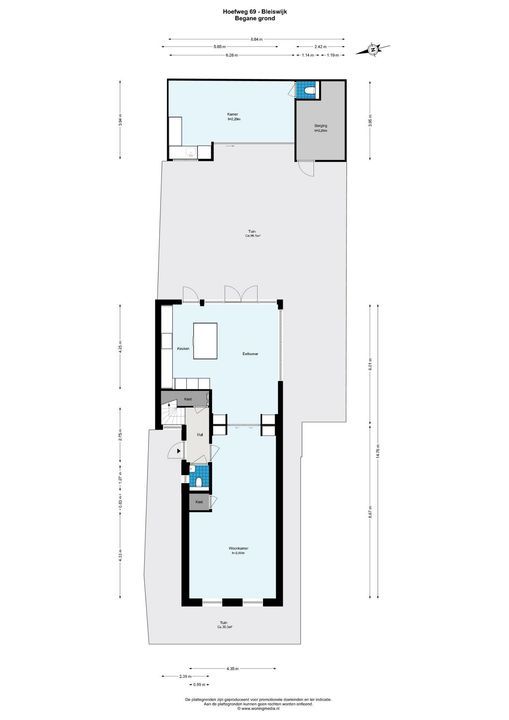 Alle verstrekte informatie moet beschouwd worden als een uitnodiging tot het doen van een bod of om in onderhandeling te treden. De teksten en impressies zijn bedoeld om een goede indruk te geven van het object. Aan de inhoud ervan is de grootst mogelijke zorg besteed. Desondanks is alle informatie nadrukkelijk onder voorbehoud. Er kunnen geen rechten worden ontleend aan deze woninginformatie.