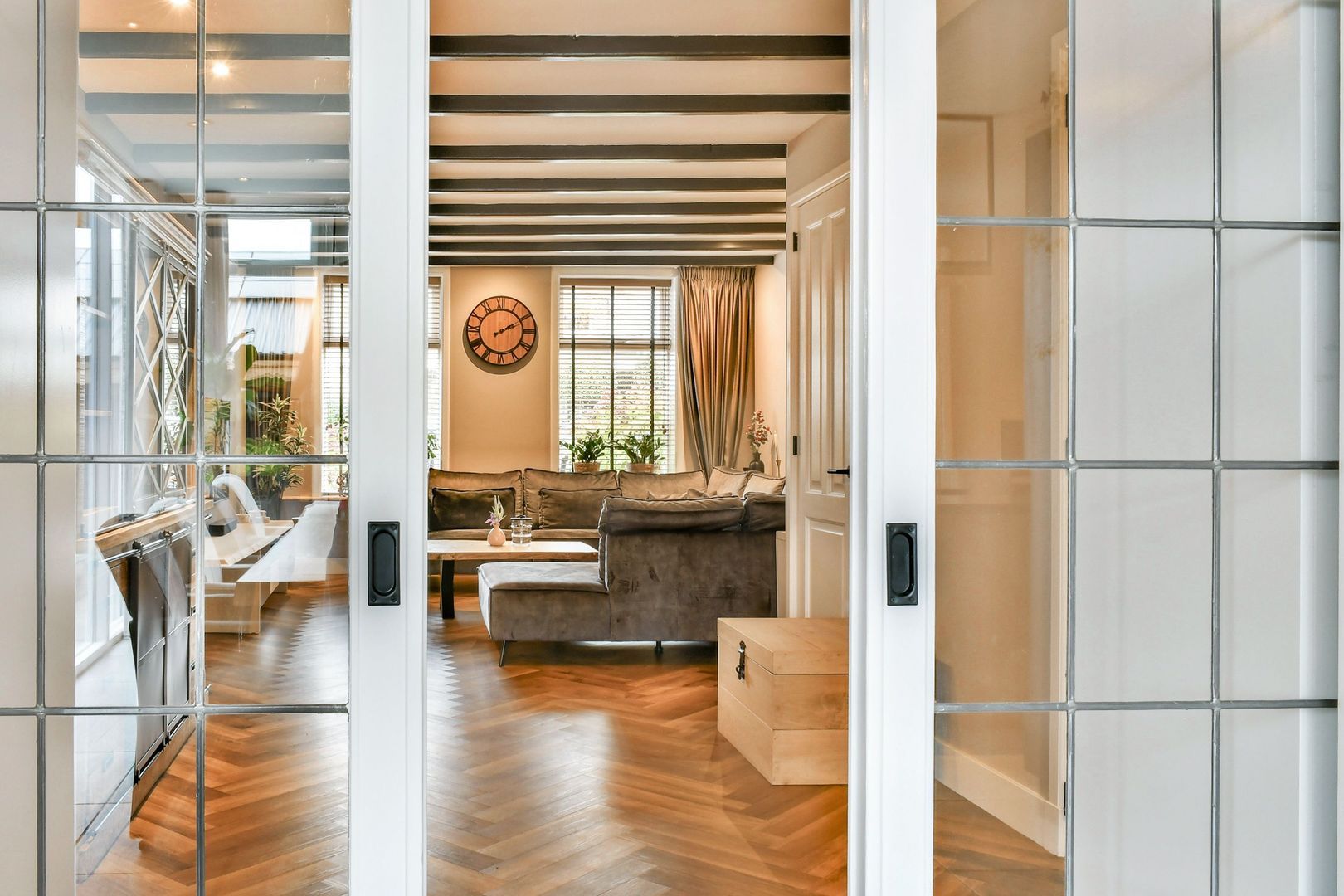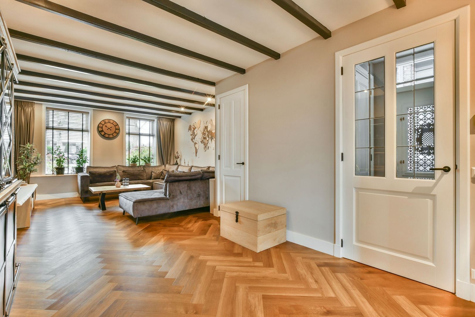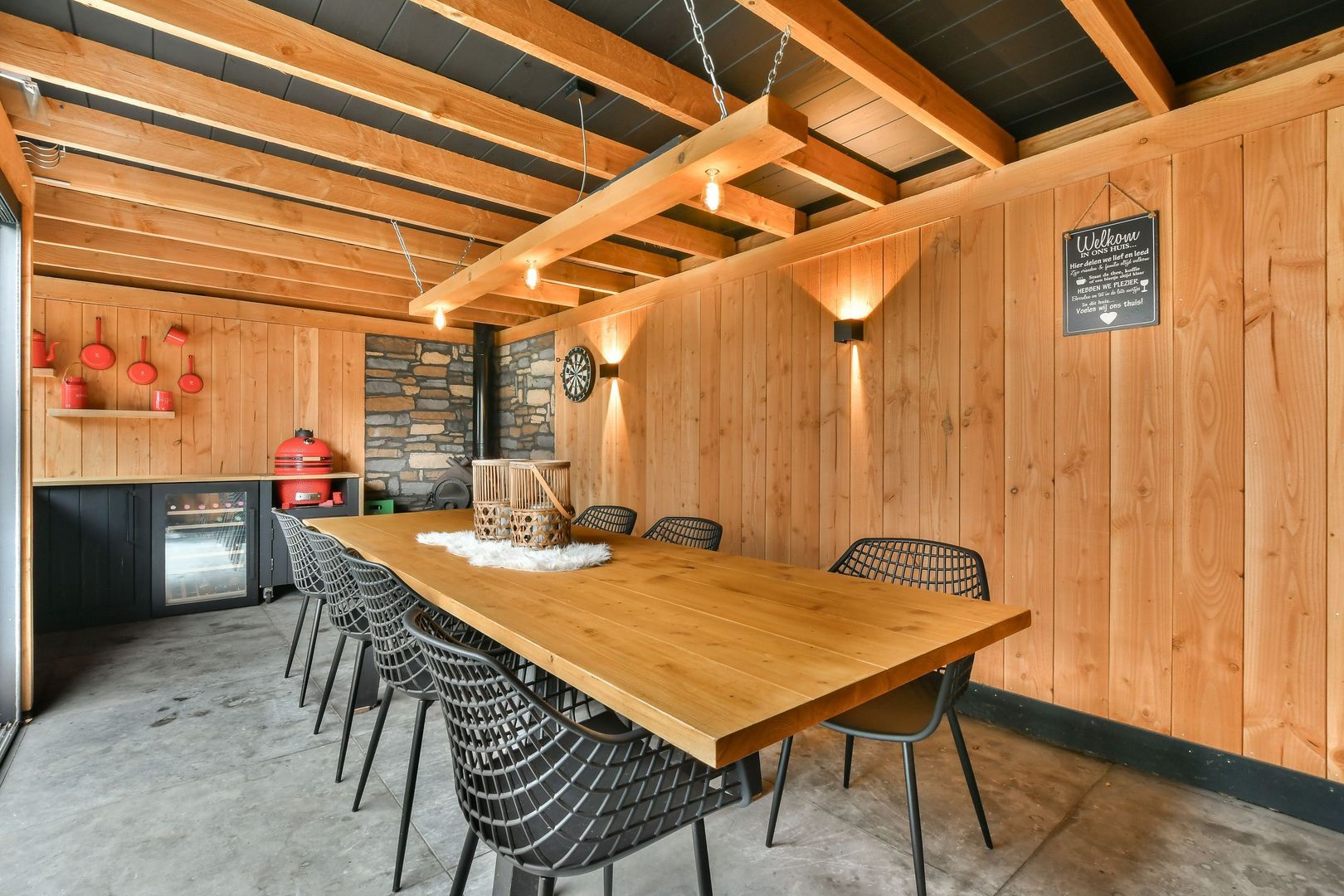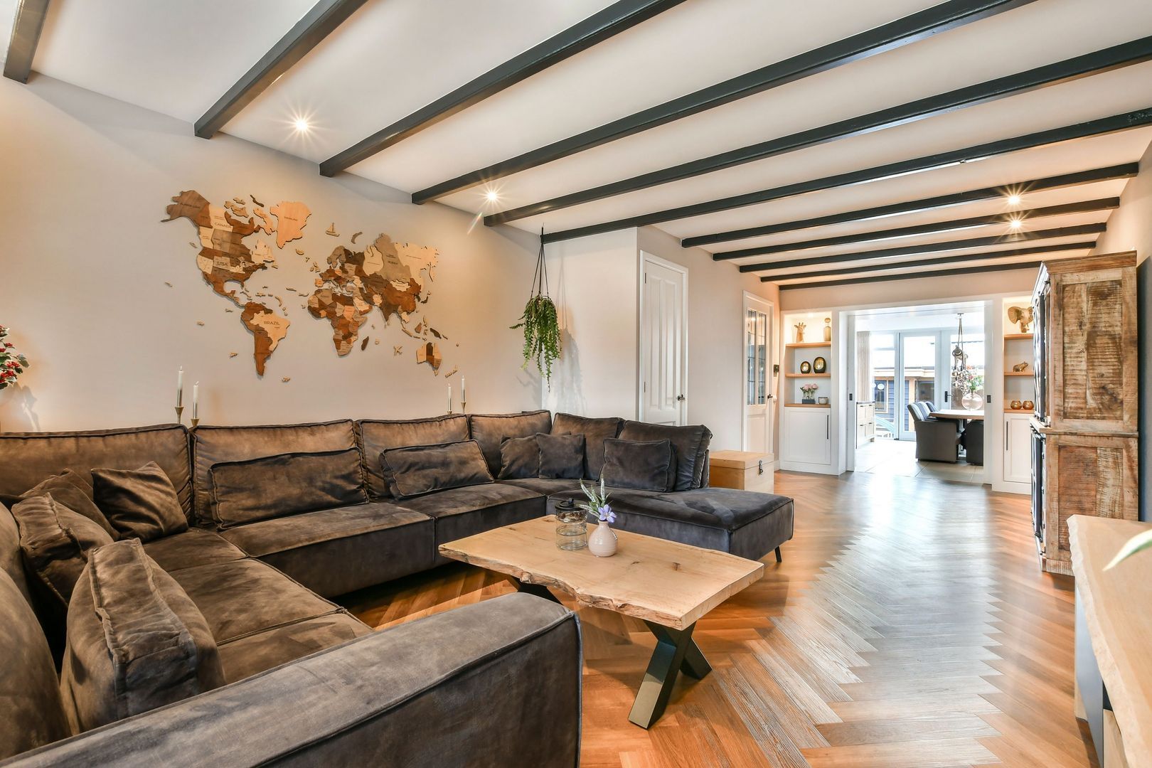 De sfeervolle en modern afgewerkte woonkamer is heerlijk licht en voorzien van airconditioning, een praktische trapkast en een prachtige pvc visgraatvloer. Aangrenzend ligt de eetkamer, ideaal voor gezellige lange avonden. De ensuite deuren vormen een stijlvolle verbinding met de keuken.