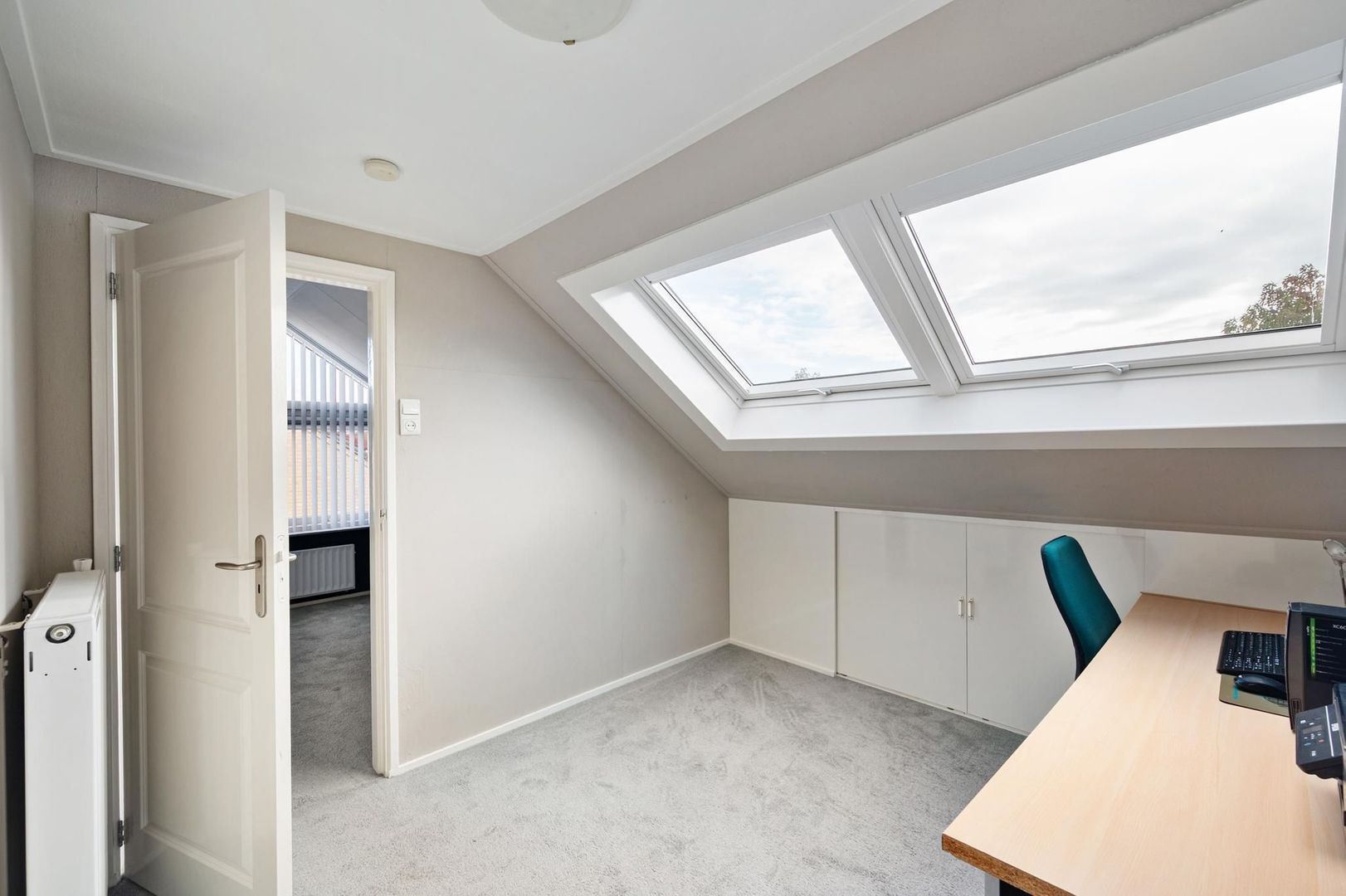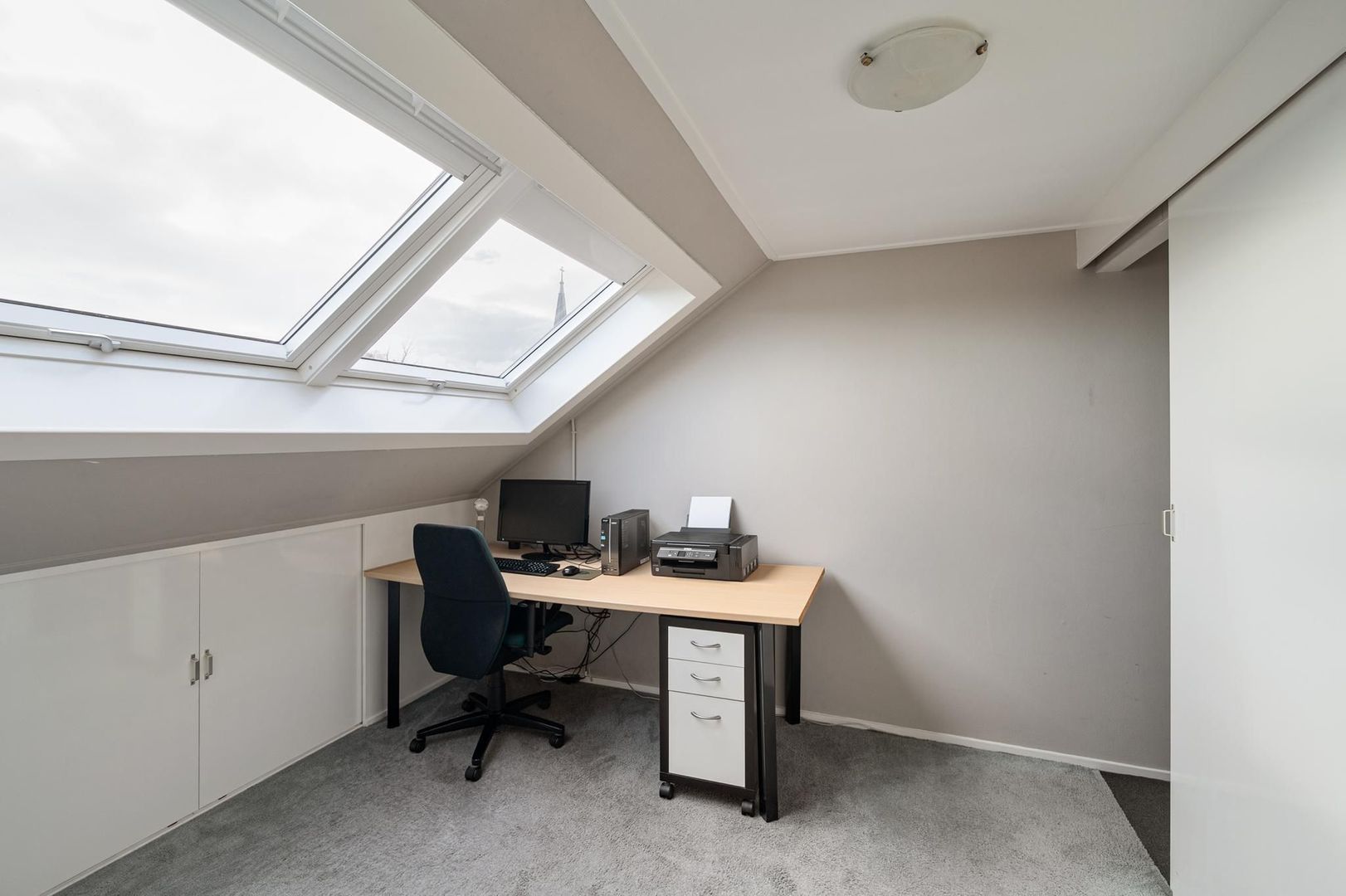 De 2e verdieping beschikt over een slaapkamer met veel bergruimte en een ruime voorkamer die perfect als werkkamer te gebruiken is, met 2 recent vernieuwde dakramen die zorgen voor veel lichtinval.