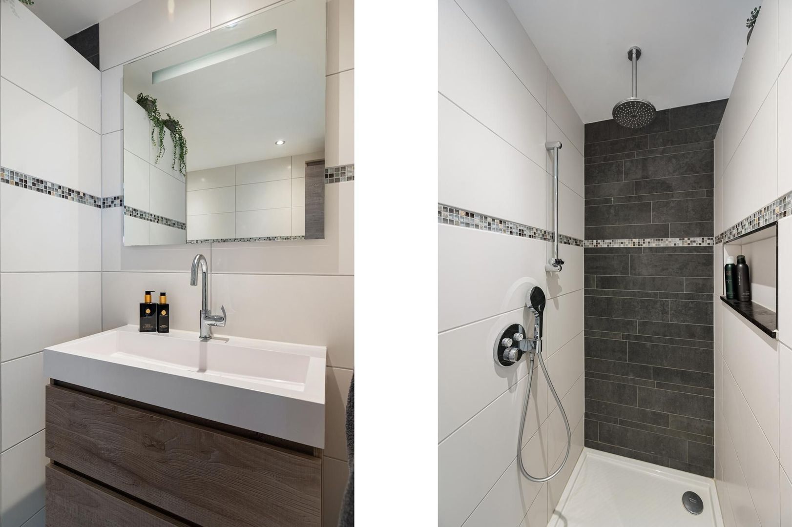 De moderne badkamer is vernieuwd in 2018 en beschikt over een inloopdouche met rainshower, een ligbad, een wastafelmeubel en handdoekradiator. Ook de separate toiletruimte is in 2018 vernieuwd.