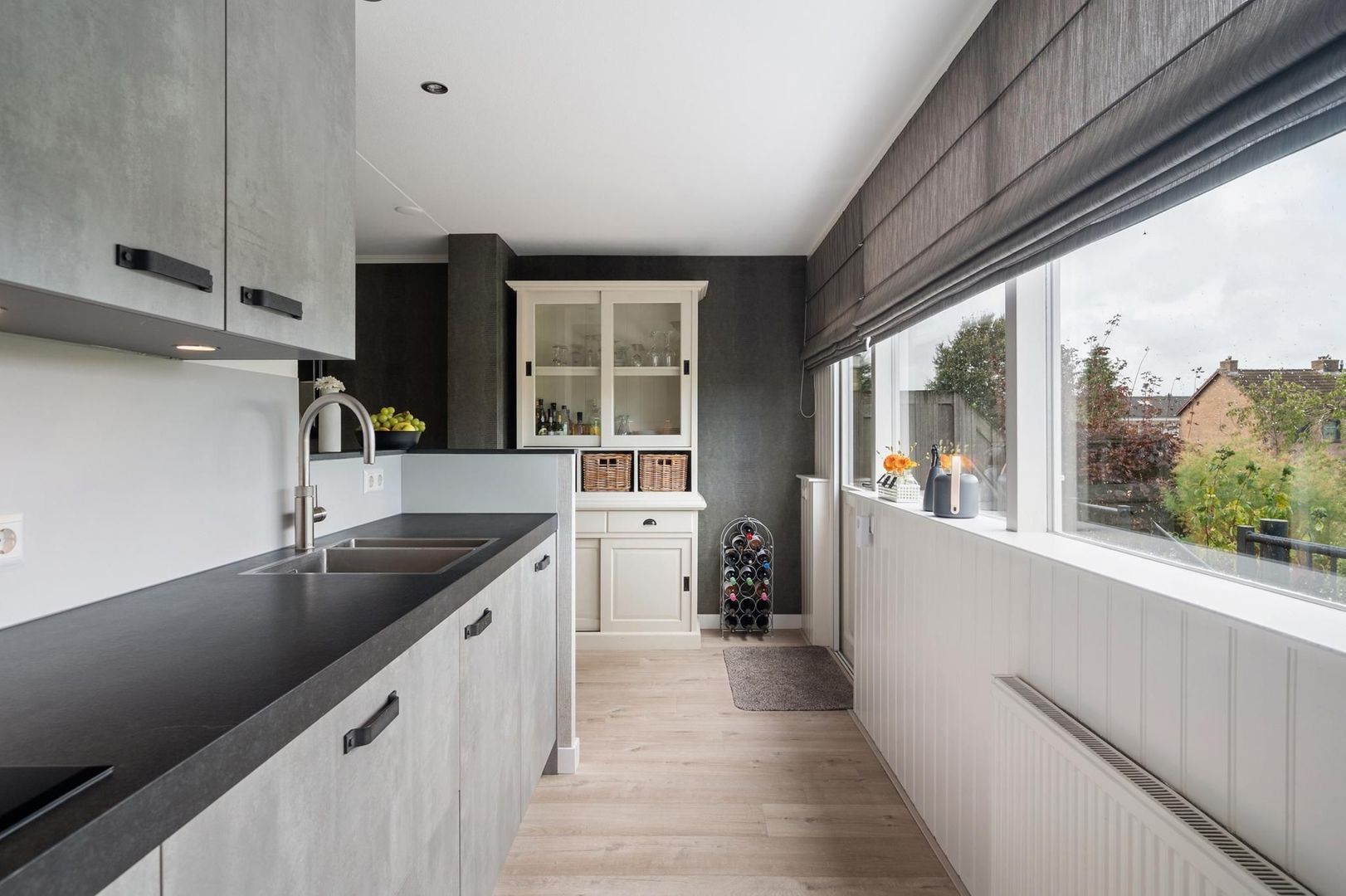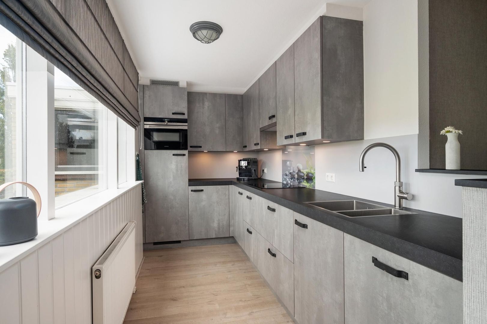 De keuken is vernieuwd in 2020 en is aan de achterzijde gelegen met toegang tot het balkon. Hiervandaan is met een trap de tuin te bereiken.