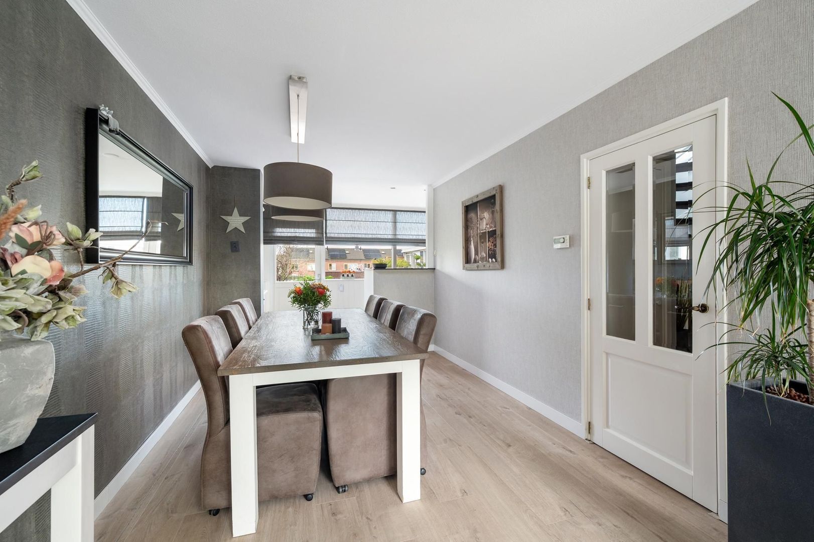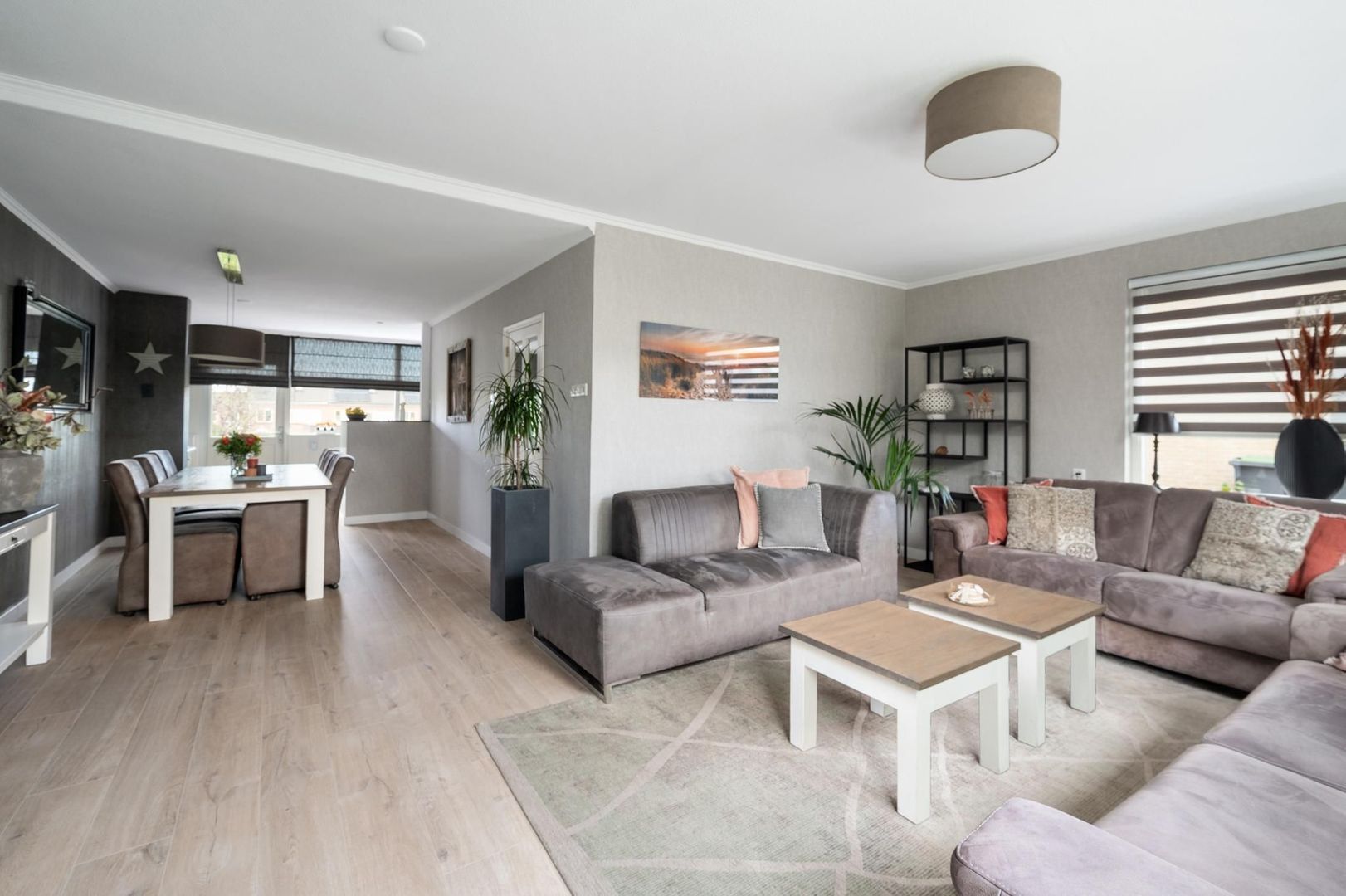De woonkamer is aan de voorzijde gelegen en van voor tot achter voorzien van een klik-pvc-vloer.