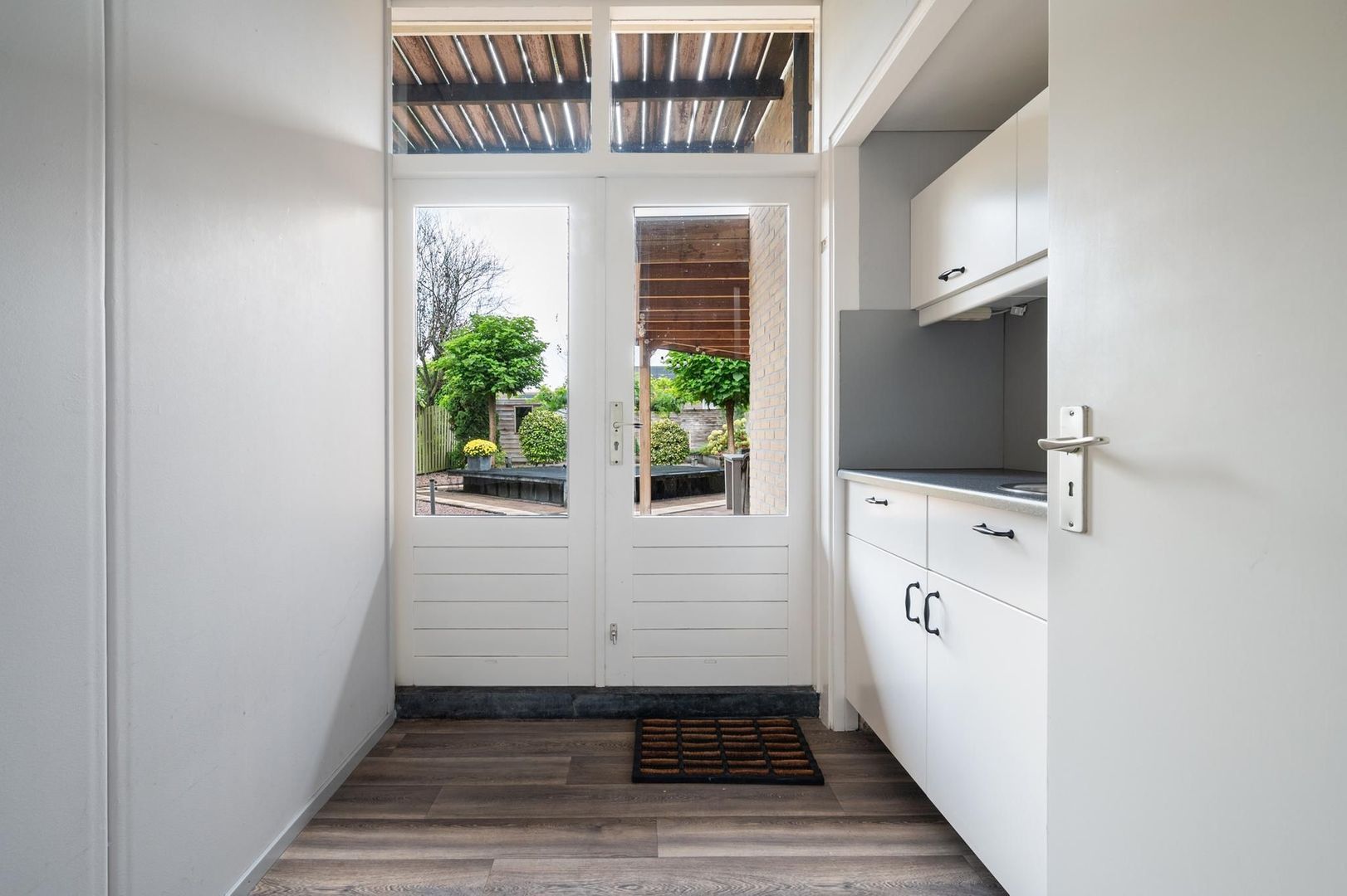 Via de keuken is de achtertuin te bereiken door middel van openslaande deuren.