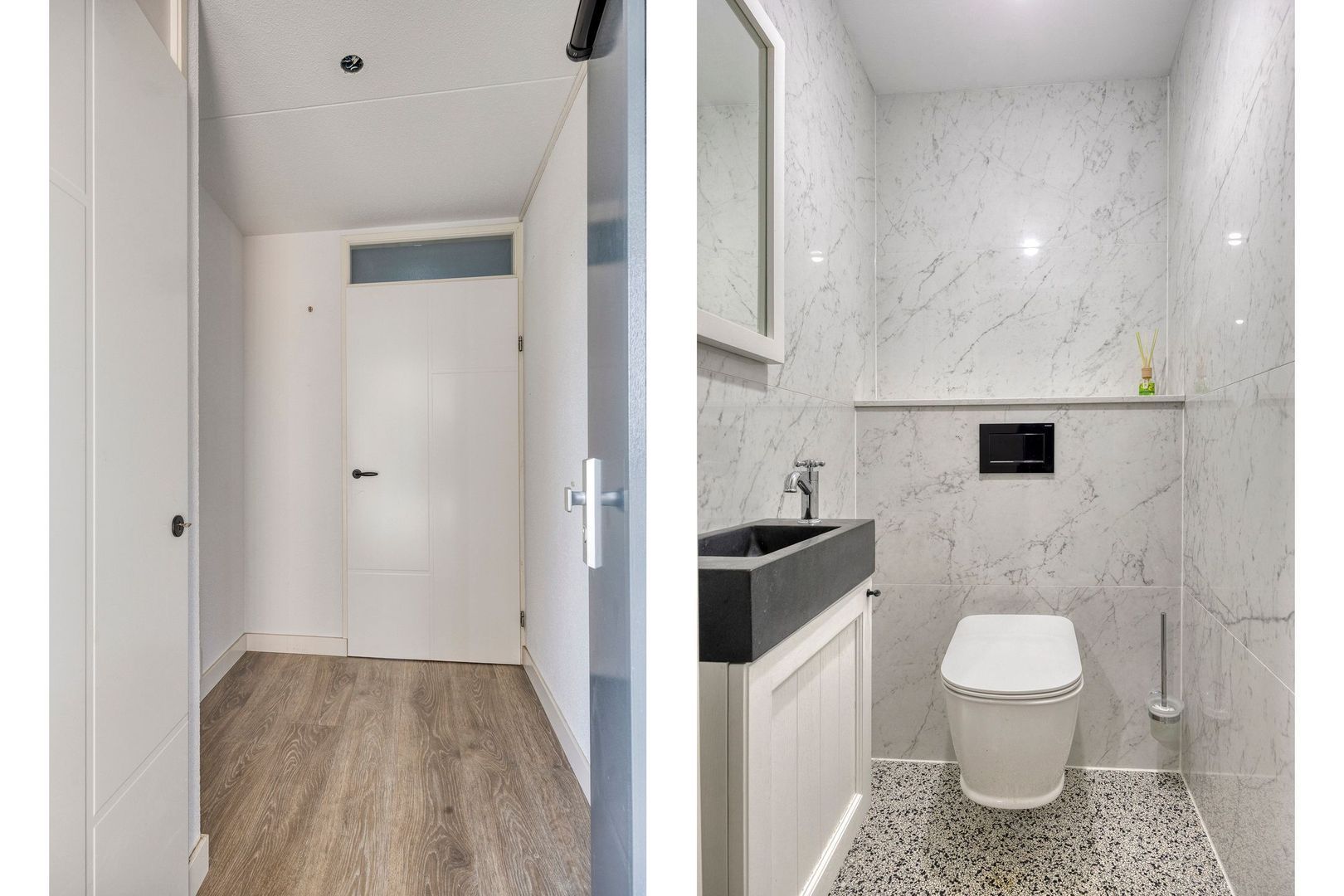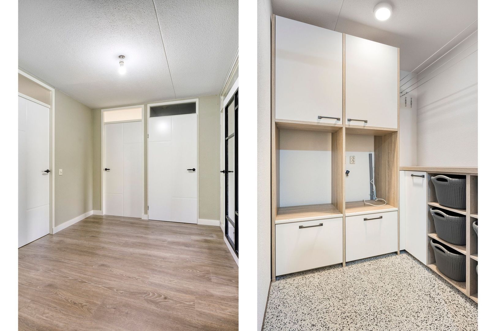 Entree met hal, meterkast, toilet, praktische berging met aansluiting voor wasmachine en droger, en toegang tot alle vertrekken.