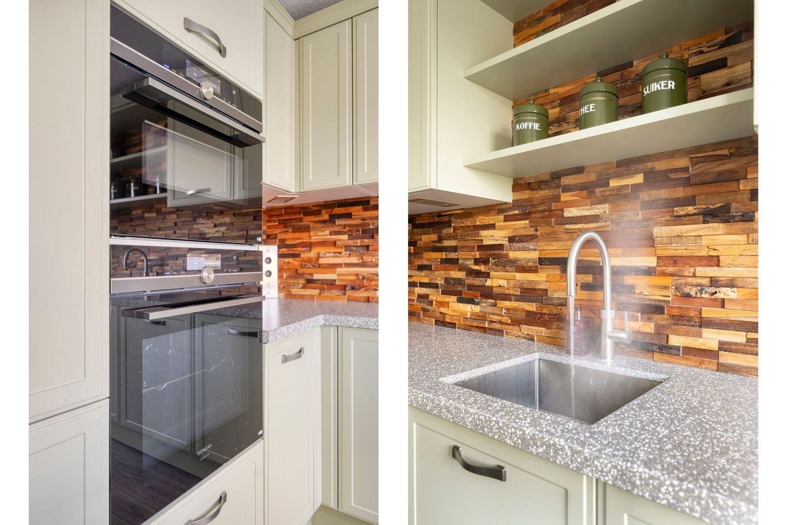 De huidige eetkamer is bij de woonkamer betrokken (voorheen een slaapkamer), waardoor de living nog royaler aanvoelt. Vanuit hier bereikt u de interne berging met de opstelplaats van de cv-ketel.