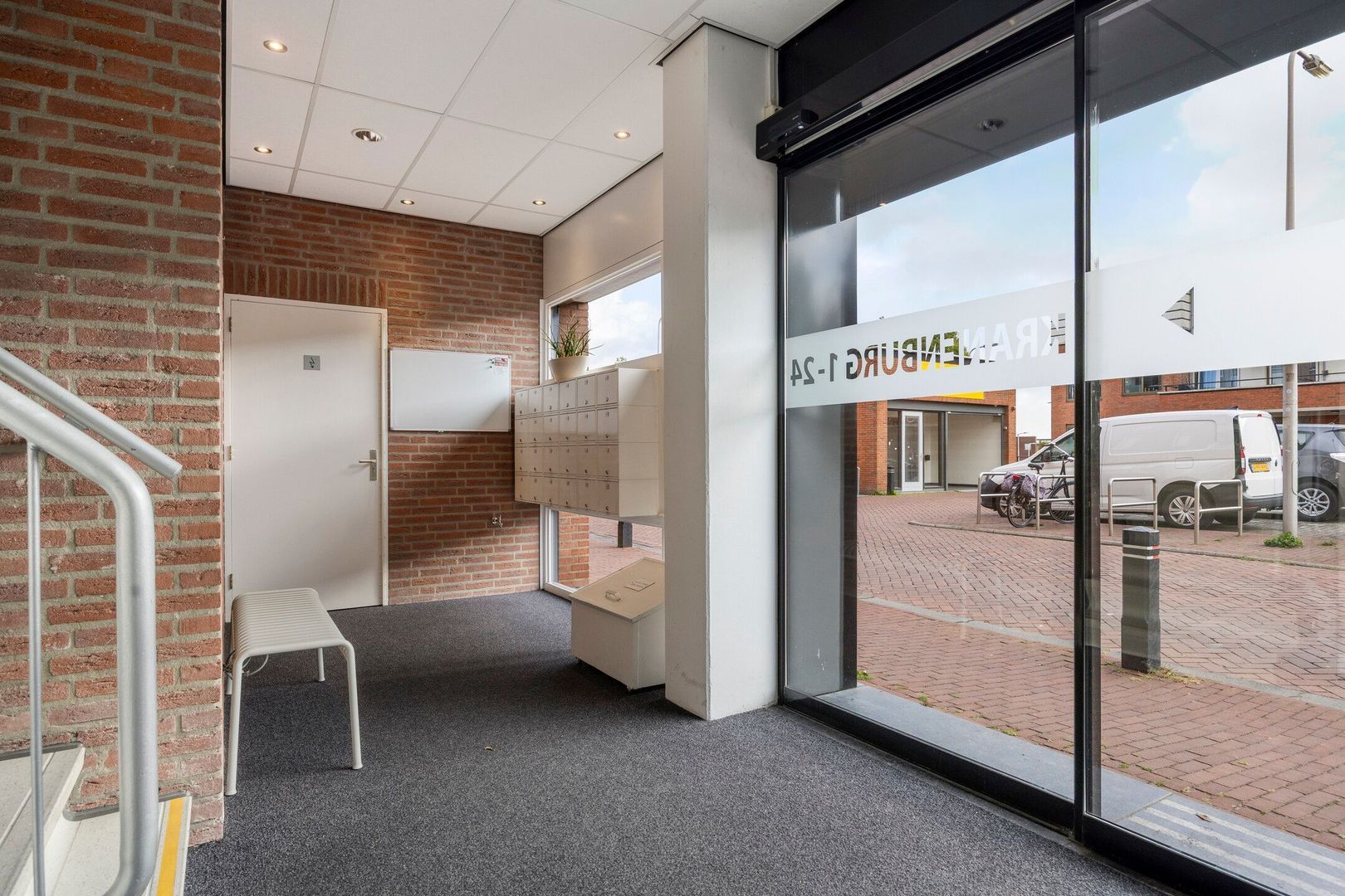 Afgesloten portiek met bellentableau, videofoon en brievenbussen. Vanuit de centrale hal bereikt u de bergingen, het trappenhuis en de lift.