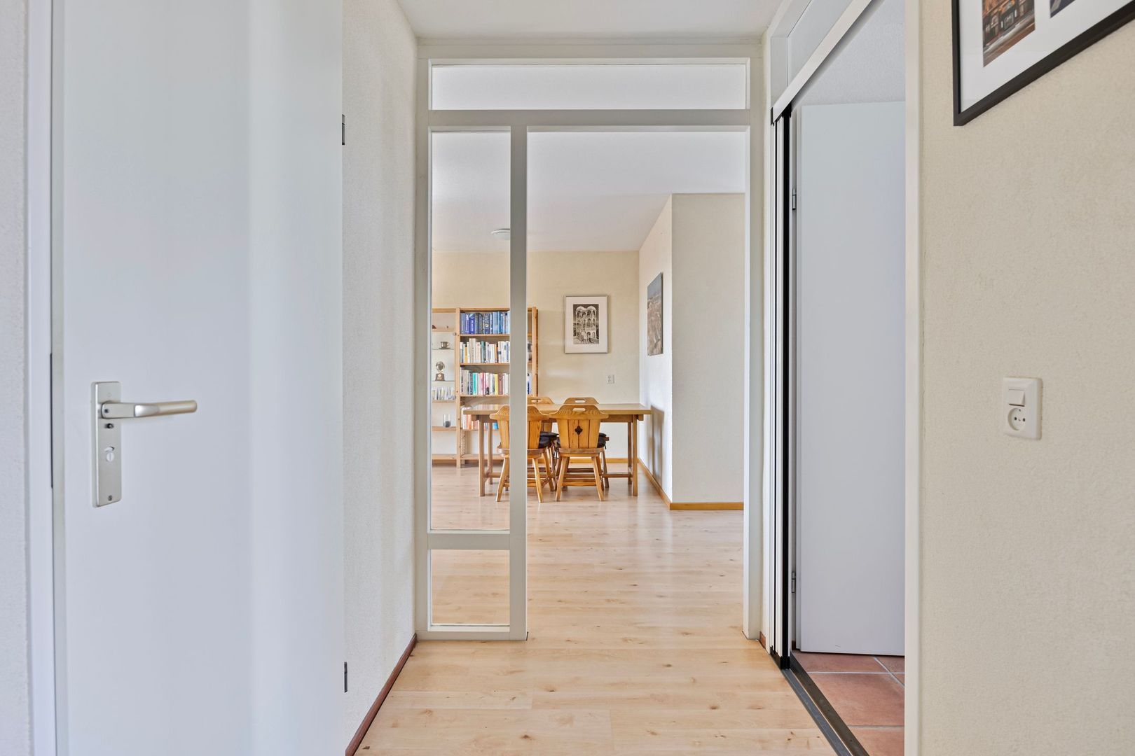 De hal geeft toegang tot de bergingen, het trappenhuis en de lift.