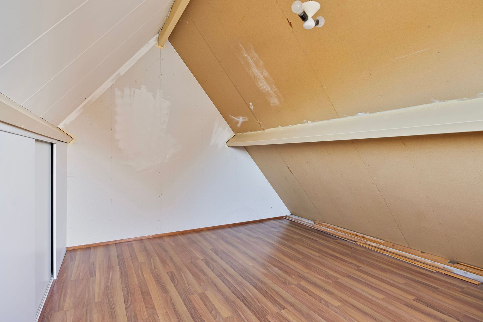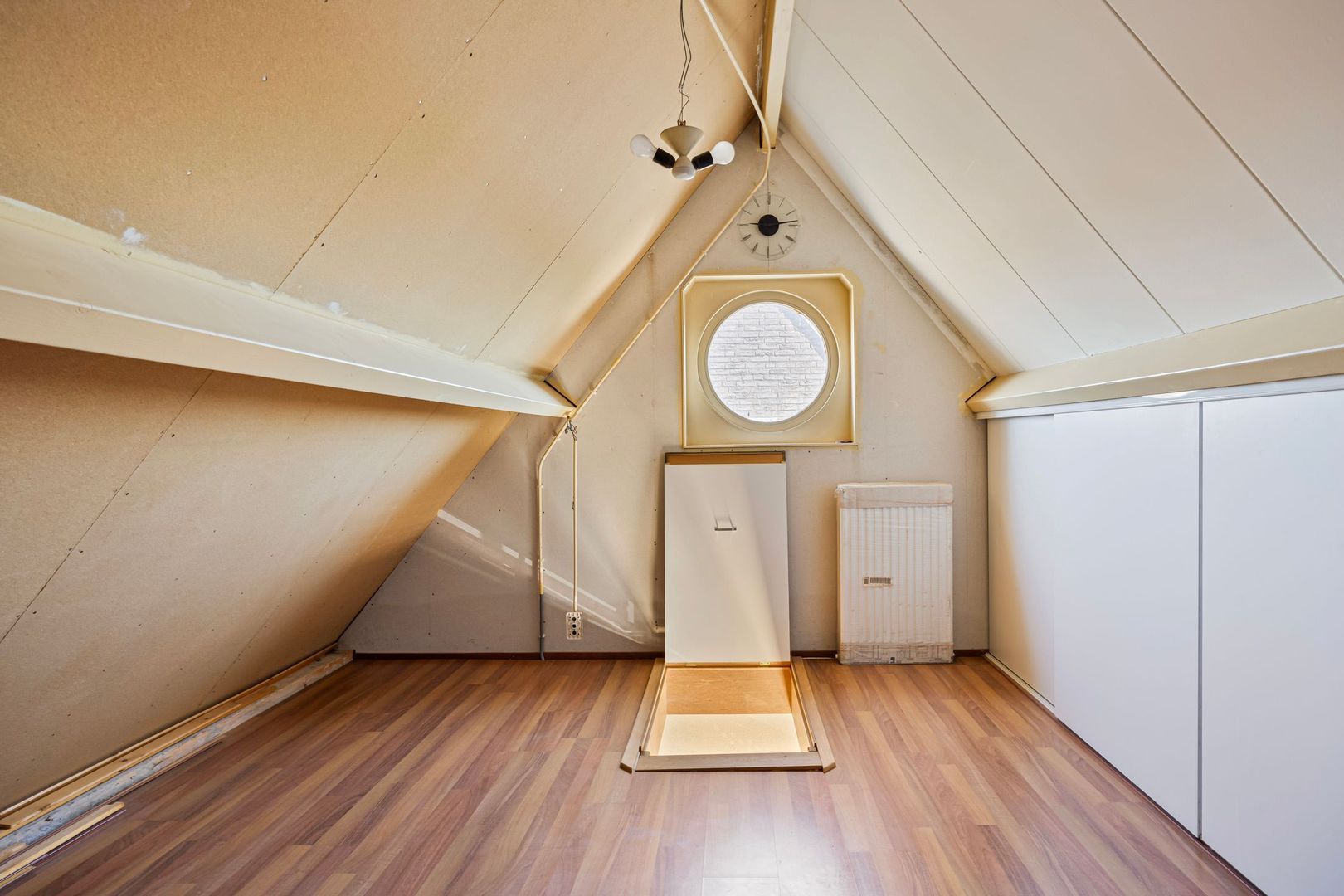 Via een vaste trap vanuit de woonkamer bereikt u de verrassend ruime zolderverdieping met stahoogte. Deze ruimte is voorzien van een raam en knieschotten en biedt volop mogelijkheden voor extra opslag, een werkplek of hobbyruimte.