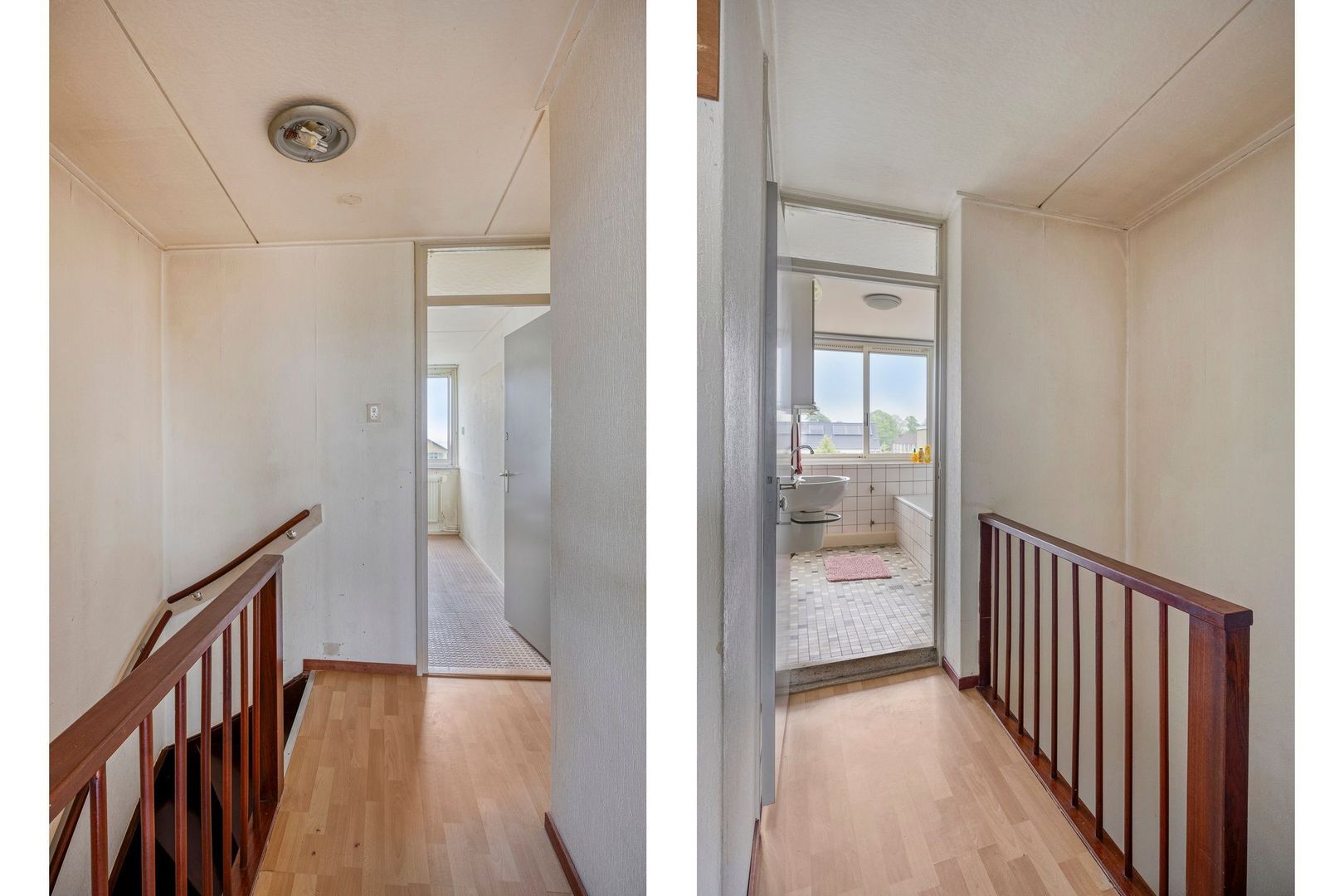 De overloop geeft toegang tot drie slaapkamers en de badkamer.