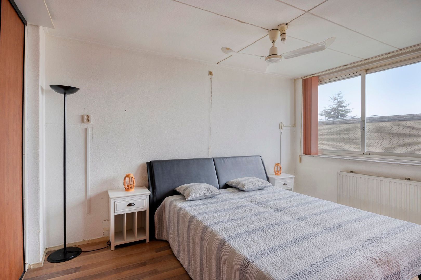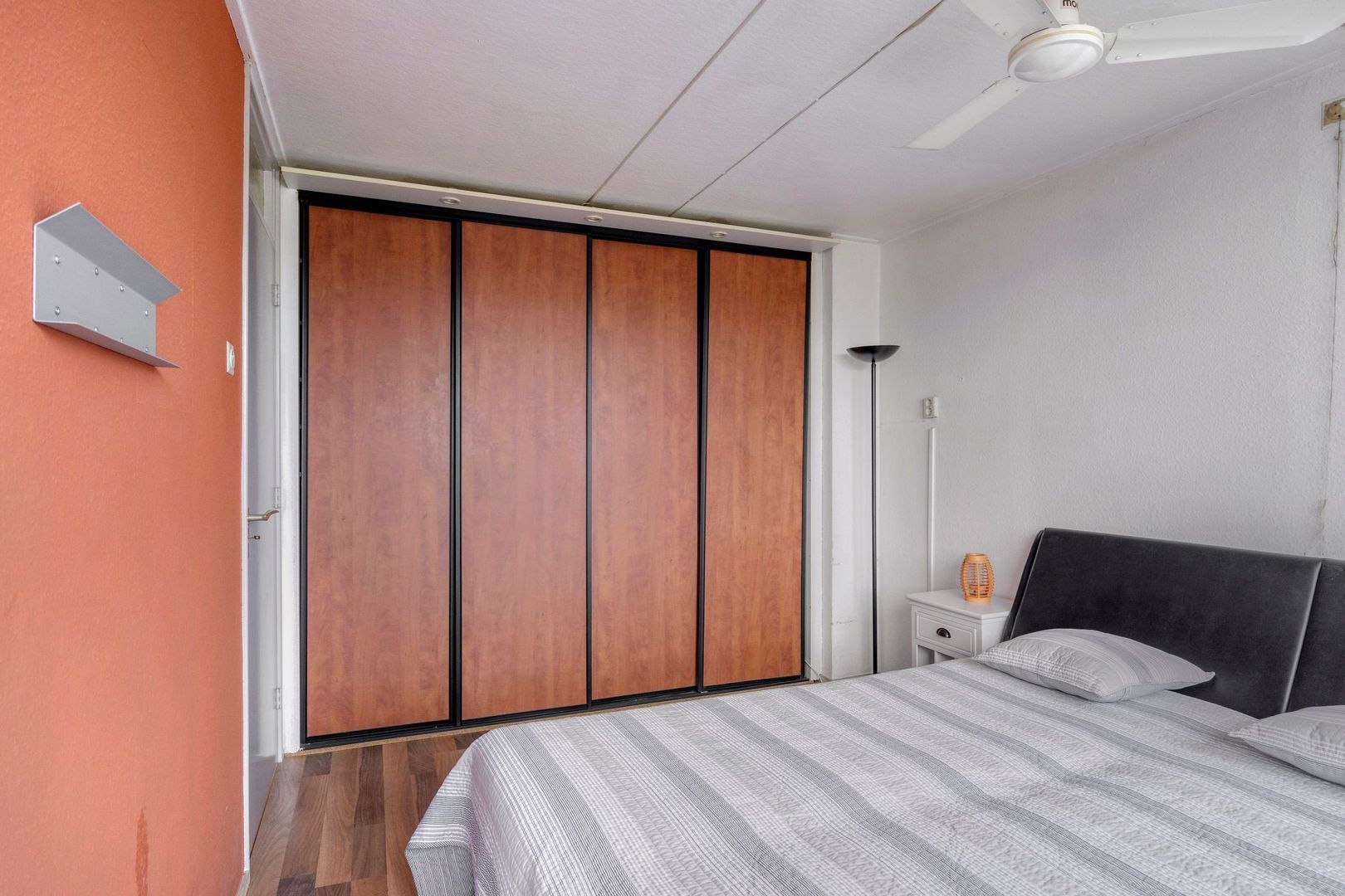 De master bedroom ligt aan de voorzijde en beschikt over een kastenwand.