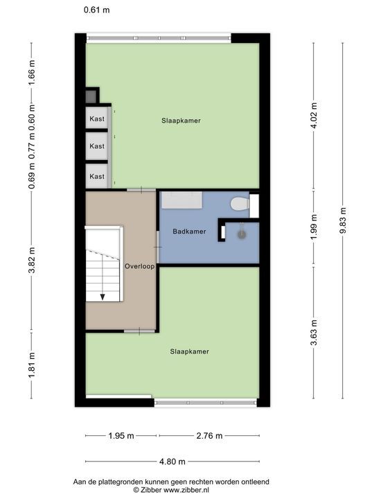 De woning is conform de Branchebrede Meetinstructie (BBMI) opgemeten. De Meetinstructie is bedoeld om een meer eenduidige manier van meten toe te passen voor het geven van een indicatie van de gebruiksoppervlakte. De Meetinstructie sluit verschillen in meetuitkomsten niet volledig uit, door bijvoorbeeld interpretatieverschillen, afrondingen of beperkingen bij het uitvoeren van de meting.