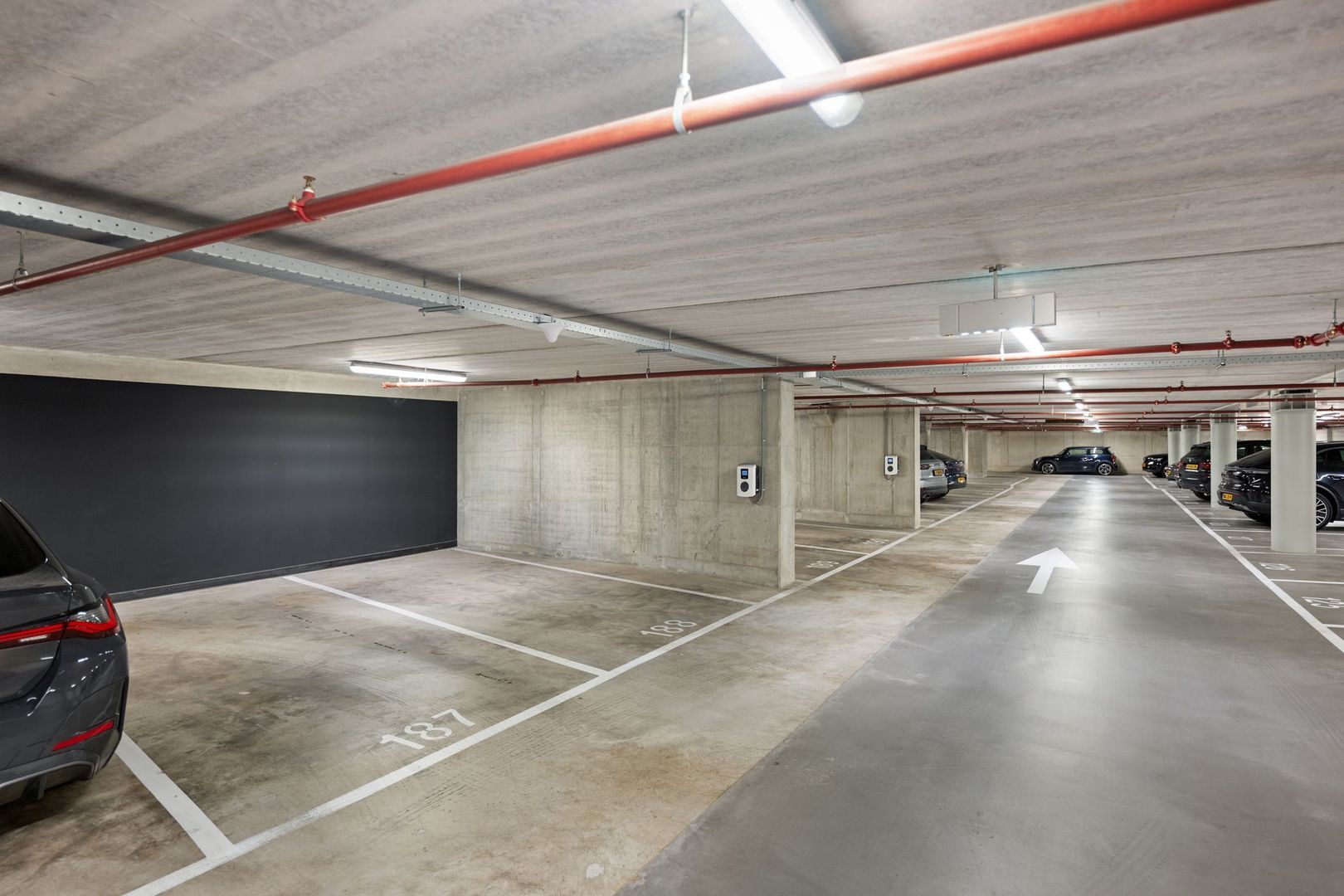 - Parkeerplaats in de afgesloten garage onder het complex seperaat te koop voor € 55.000,- k.k.