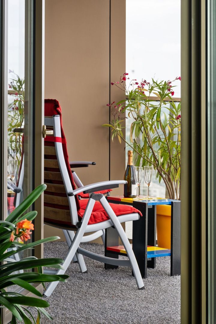 Dit stijlvol afgewerkte 2-kamerappartement bevindt zich op de 29e verdieping en beschikt over een ruim terras met een adembenemend uitzicht over de stad.