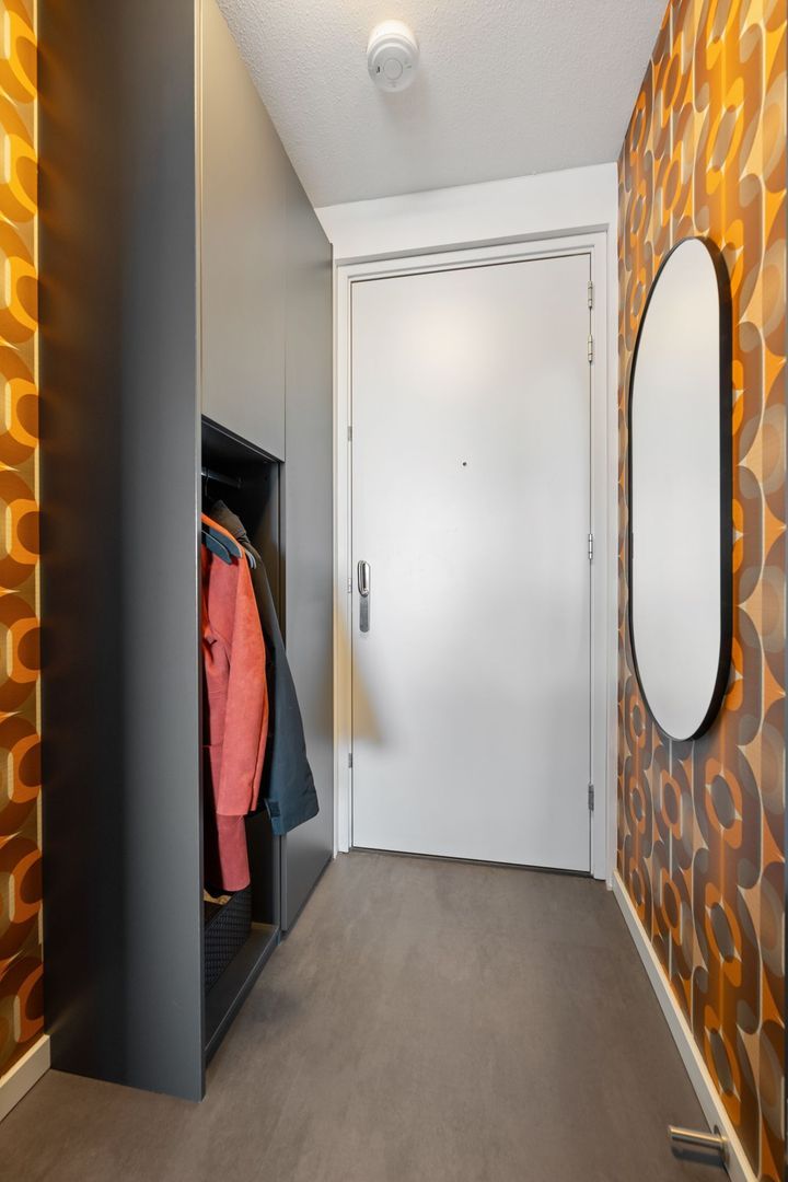 Entree, hal met modern toilet, een technische ruimte met aansluitingen voor wasmachine en droger, bergruimte en de WTW-installatie. De meterkast bevindt zich buiten het appartement, in de algemene hal.