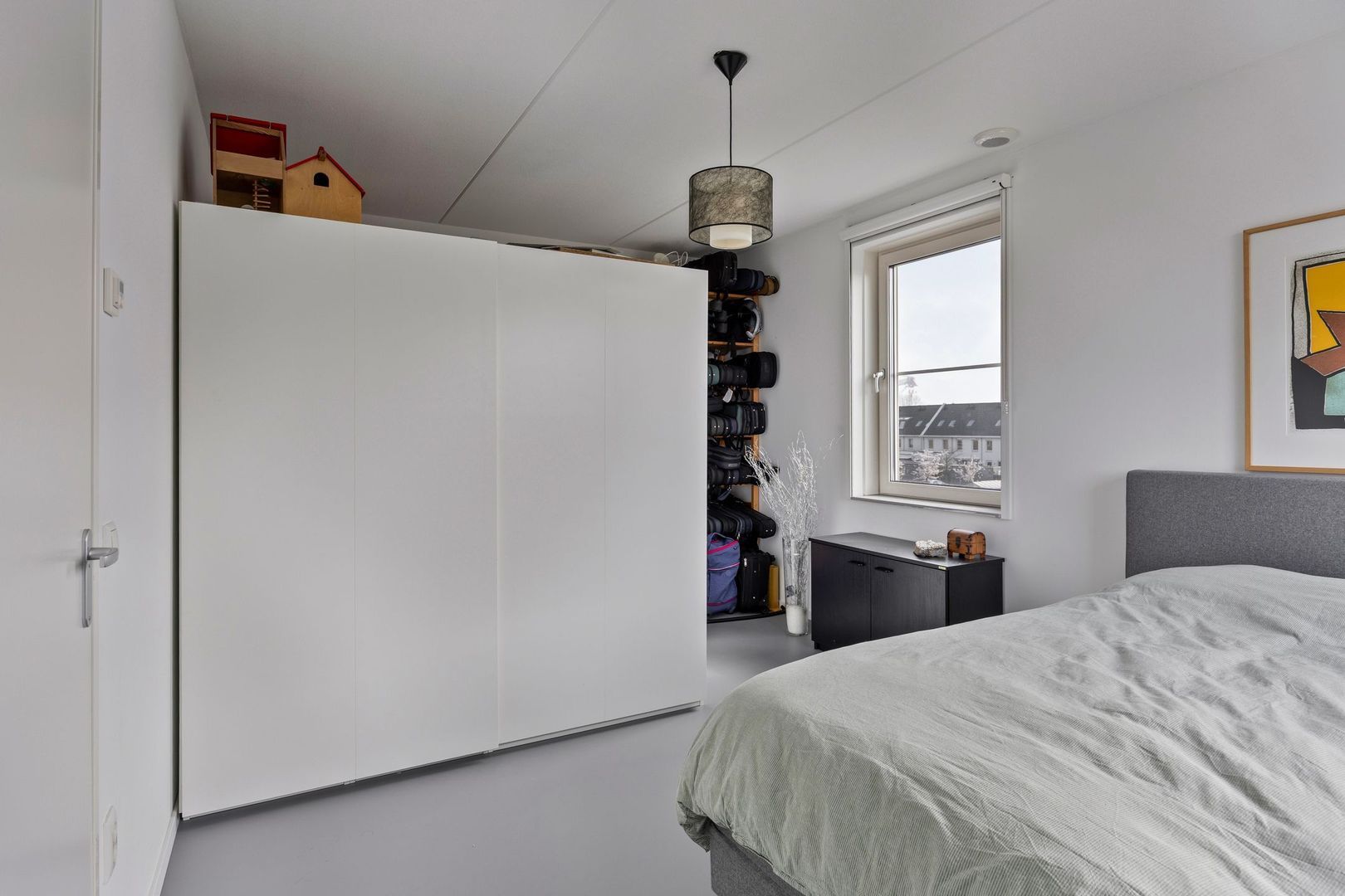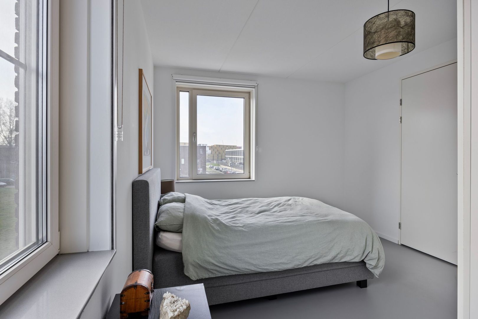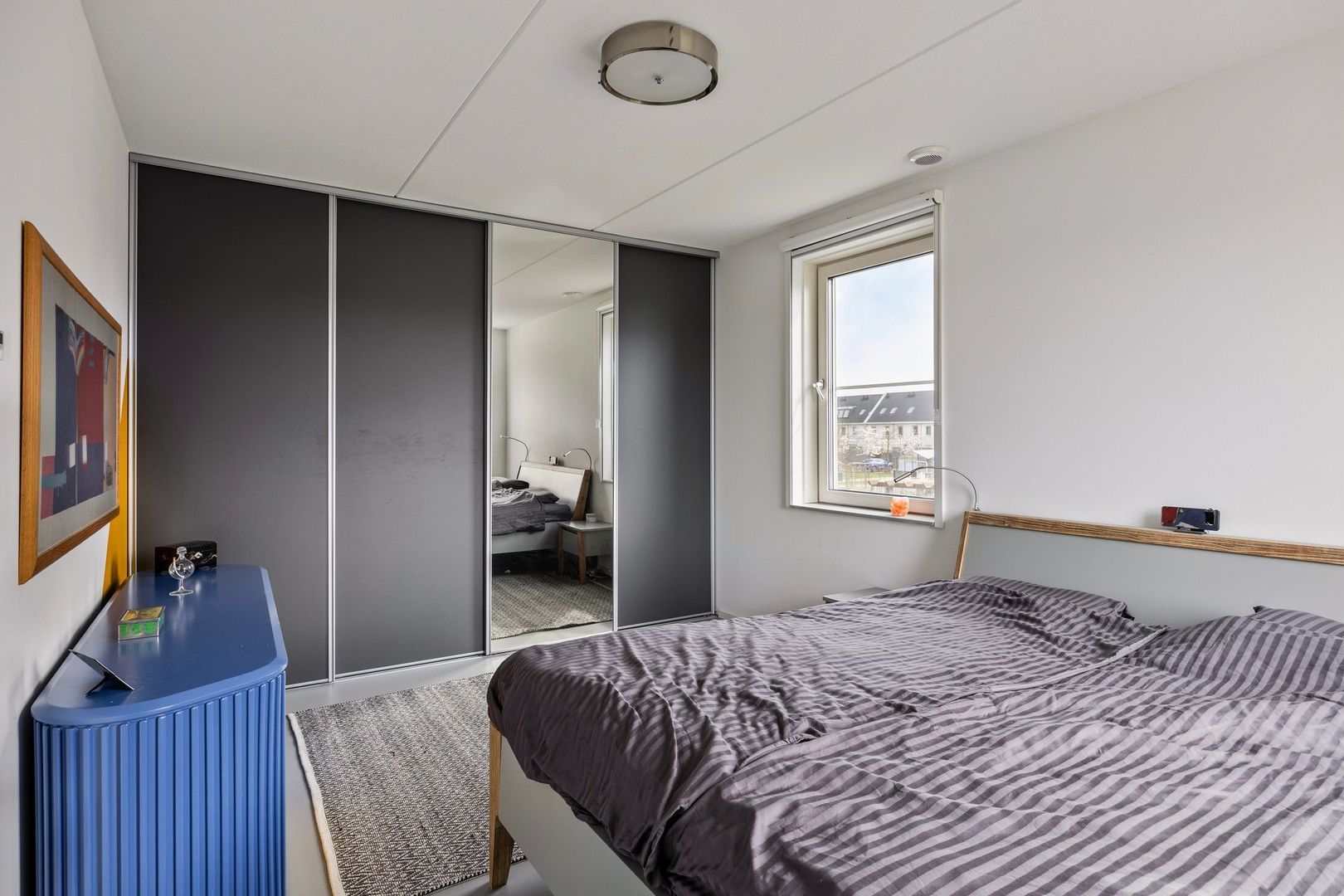 Slaapkamer 1, bevindt zich aan de voorzijde van de woning met prachtig uitzicht over de Nieuwe Maas.