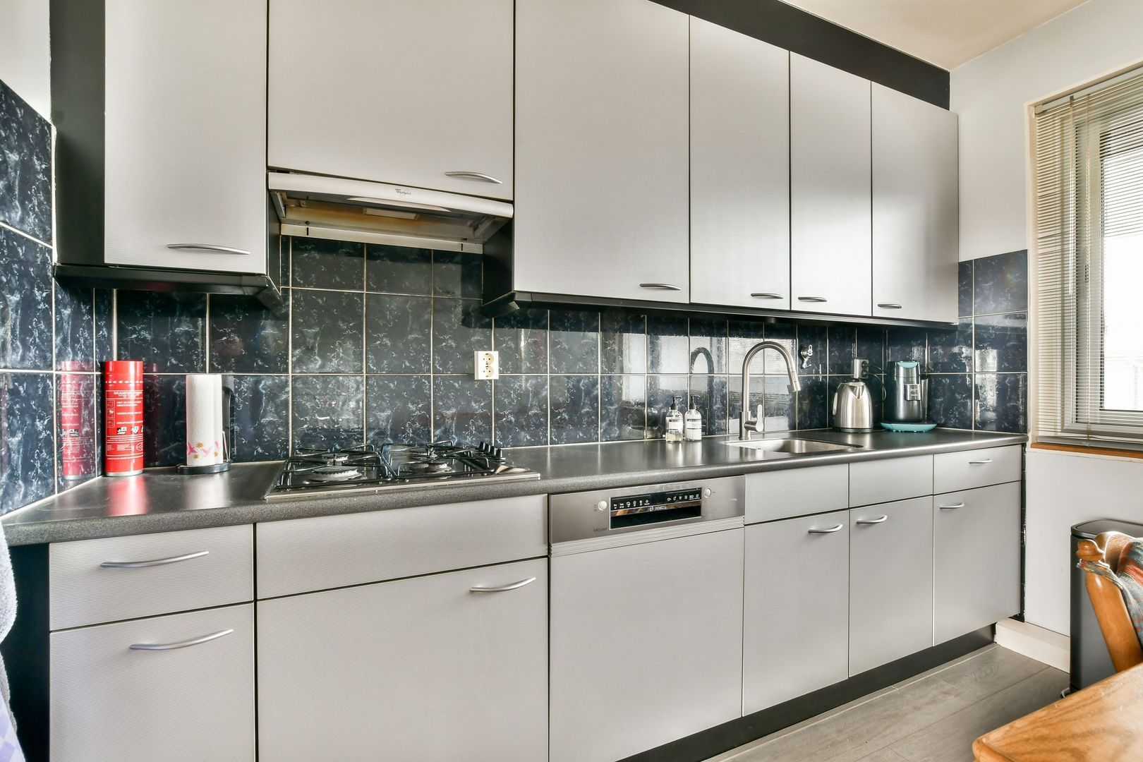 De keuken is voorzien van diverse inbouwapparatuur, waaronder een 4-pits gasfornuis, afzuigkap, vaatwasser, koel-vriescombinatie en spoelbak met mengkraan.