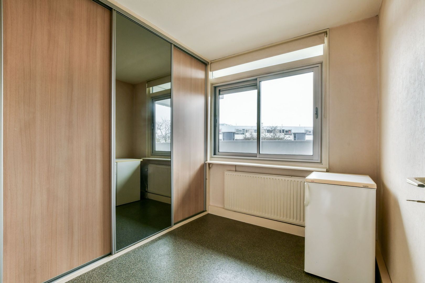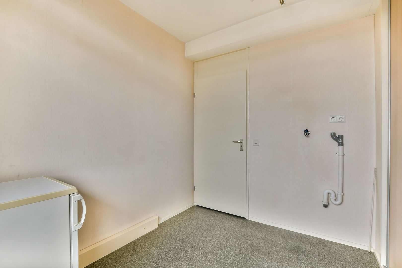Slaapkamer III, ca. 2.76 x 2.76 m, voorzien van vaste kasten en aansluitingen voor de wasmachine en droger.