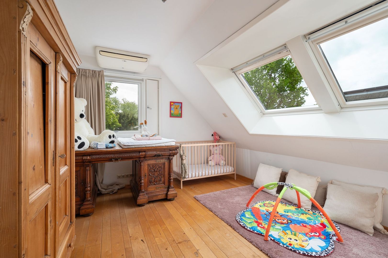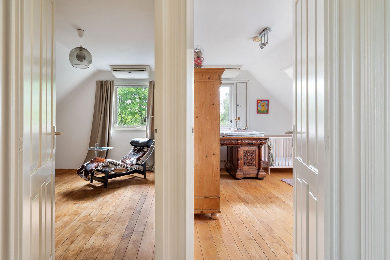 De gehele eerste verdieping is voorzien van een mooie massief houten vloer.
