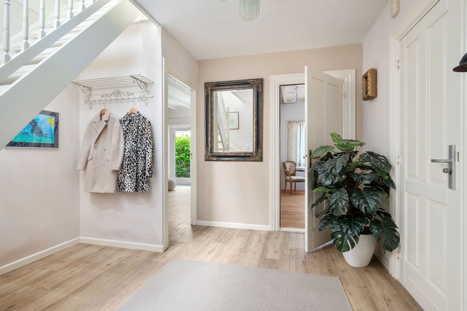 Entree, hal met trapopgang naar de 1e verdieping, meterkast, toilet en toegang tot alle vertrekken.