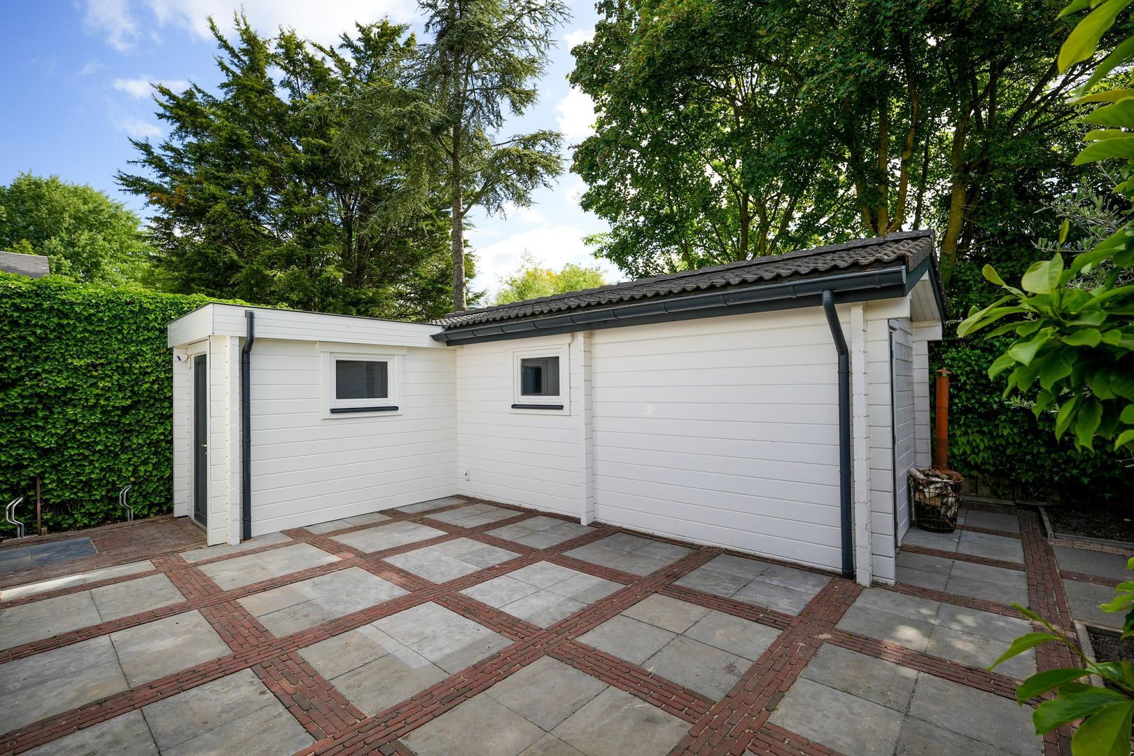 De tuin is fraai aangelegd, gelegen rondom het huis en biedt de hele dag zon en maximale privacy. Aan de achterzijde bevindt zich een grote, vrijstaande berging met geïntegreerde sauna.