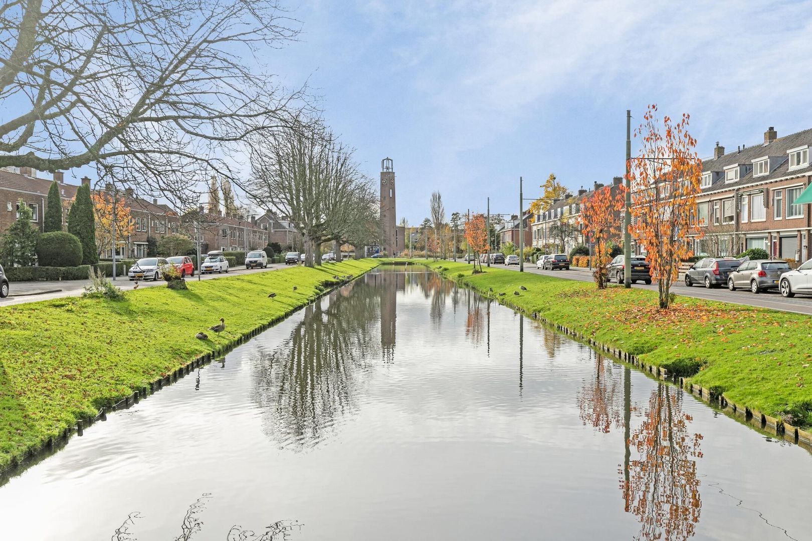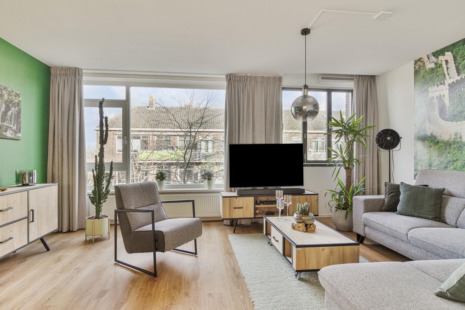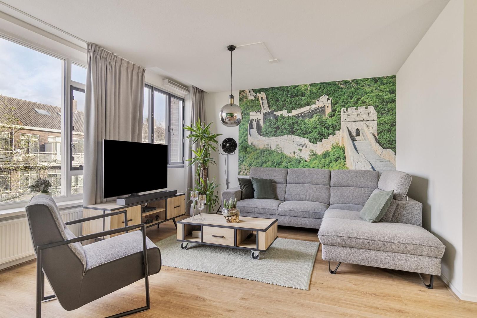 Door de brede en hoge ramen is er een lichte woonkamer met een aangename lichtinval en is er tevens een fijn uitzicht op de Peppelweg en de Kastanjesingel.