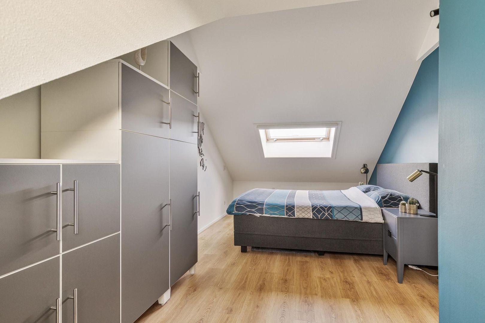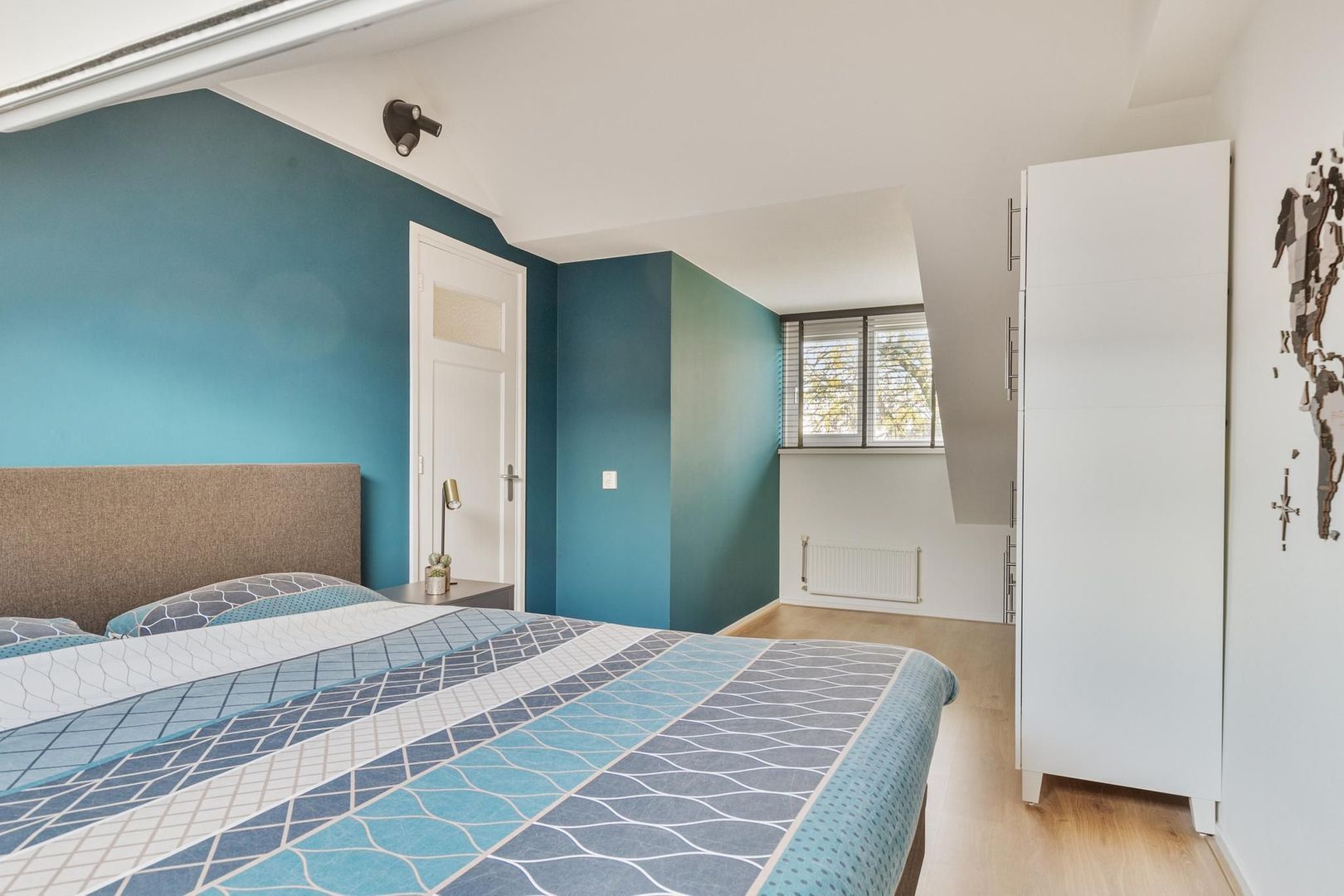 Slaapkamer 1 is een ruime slaapkamer met een schuin lopend dak.