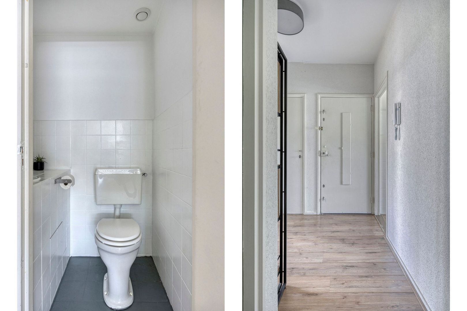 Entree, hal met ruime bergkast, toilet en toegang tot de vertrekken.
