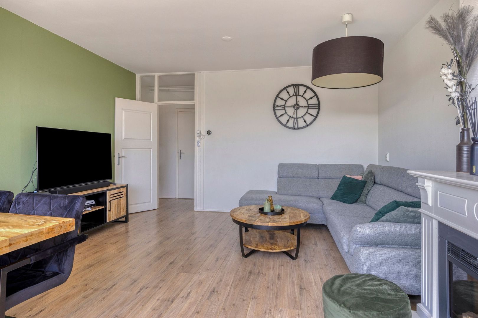 De lichte en ruime woonkamer is gelegen aan de achterzijde en voorzien van een sfeervolle gashaard. Aangrenzend vind je de eerste slaapkamer met airconditioning, eveneens aan de achterzijde, met toegang tot het zonnige balkon op het zuiden. Hier geniet je bijna de hele dag van de zon.