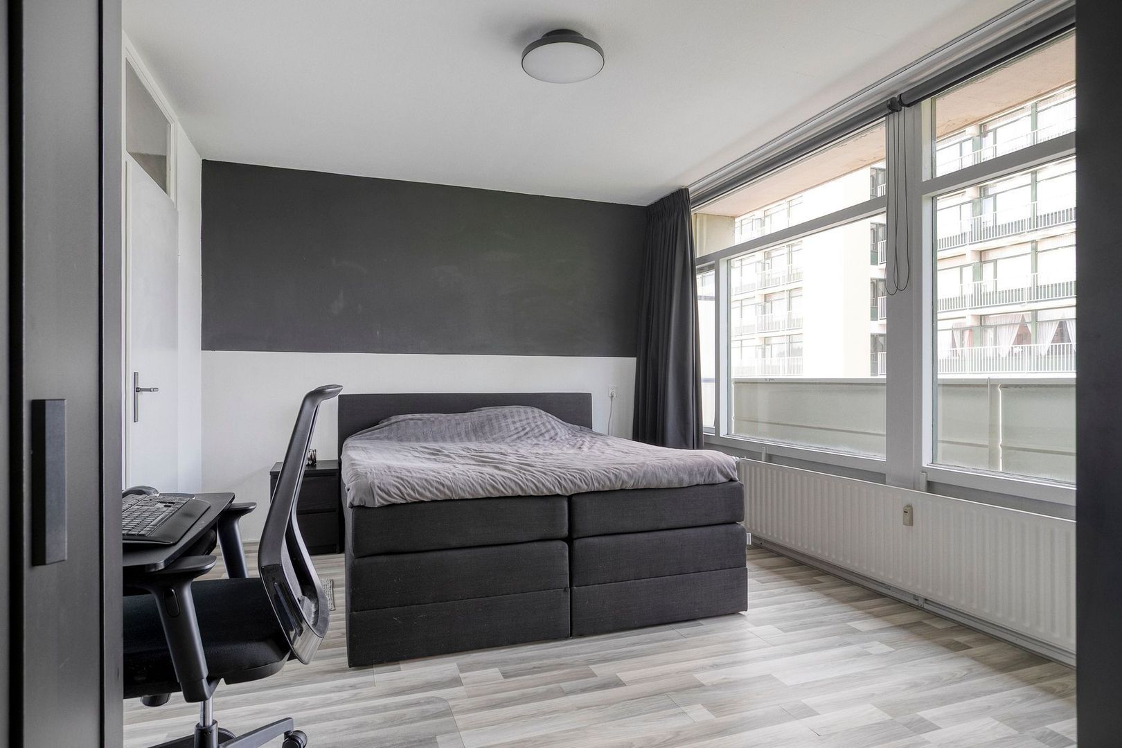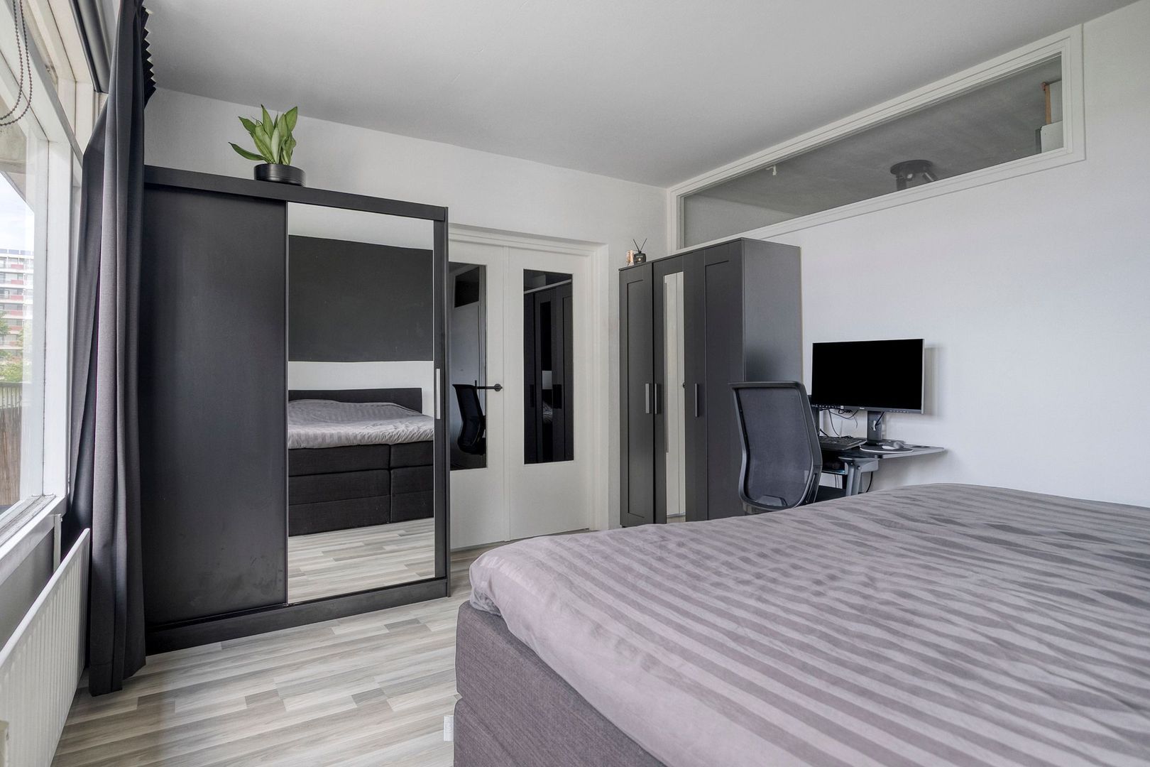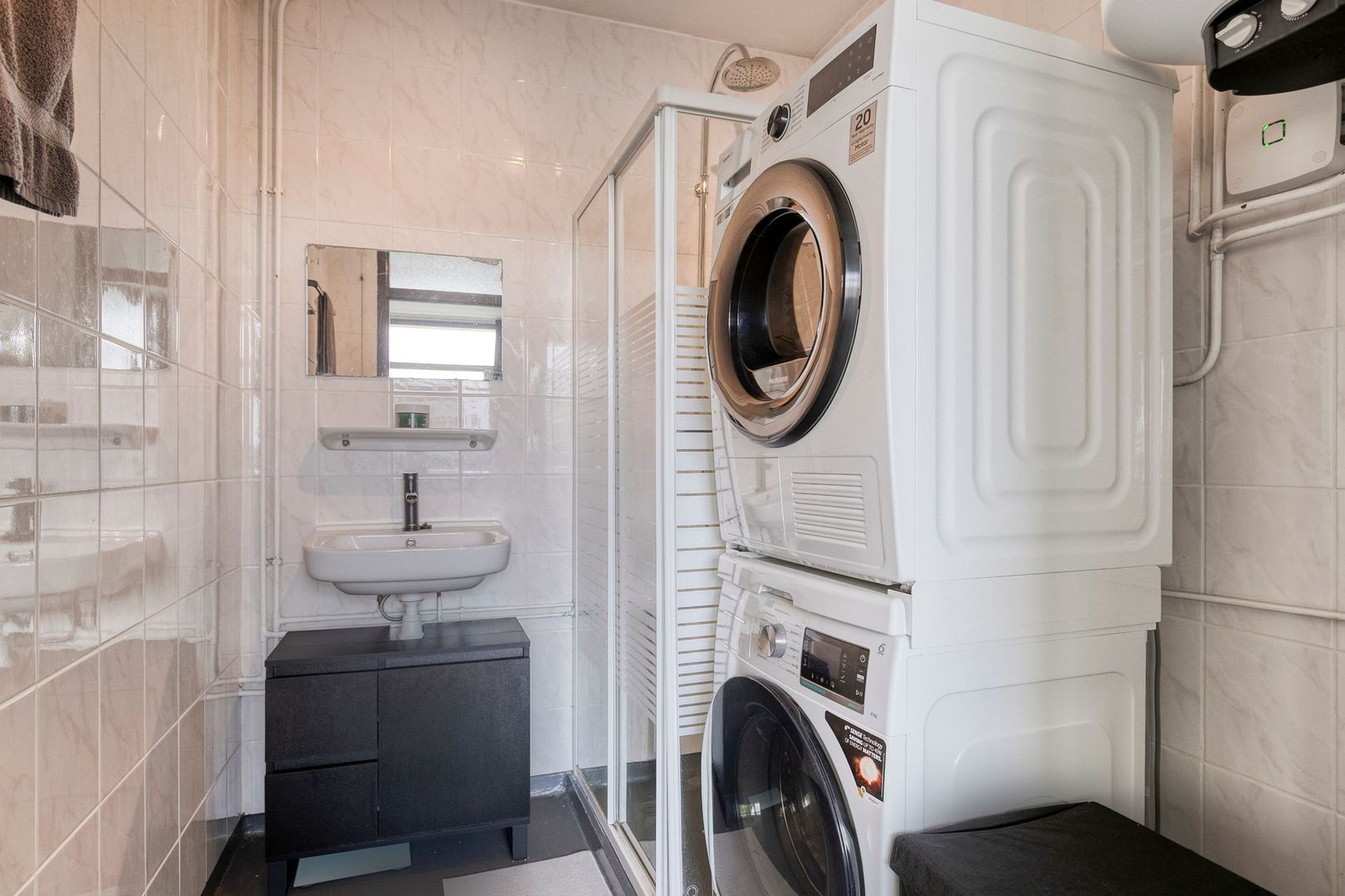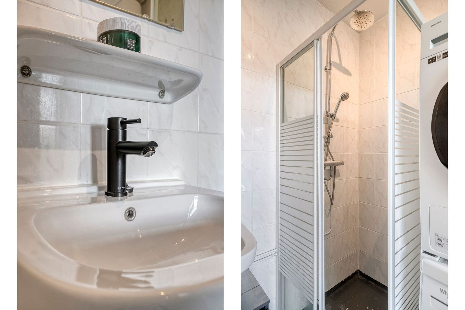 Middels dubbele deuren kom je vanuit de woonkamer in de zeer grote en lichte slaapkamer, welke is gelegen aan de balkonzijde. Deze slaapkamer heeft een oppervlakte van ca. 17m² met aansluitend de betegelde badkamer, welke is voorzien van een douche, een wastafel, een boiler en de wasmachine aansluiting.