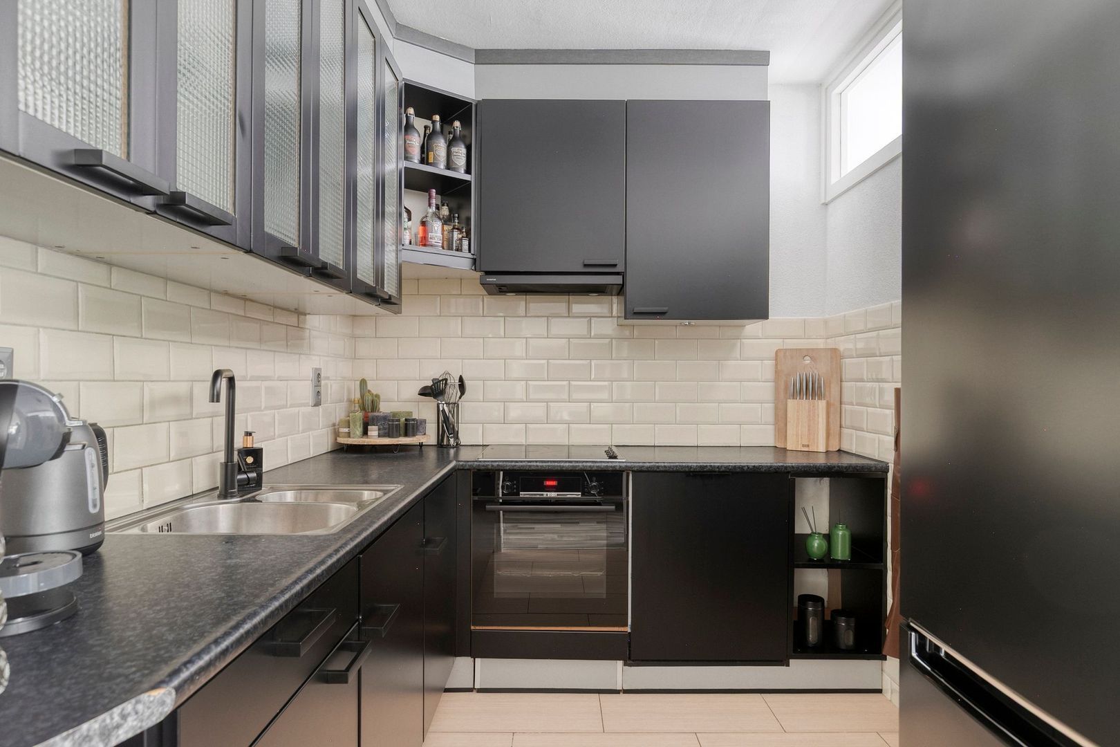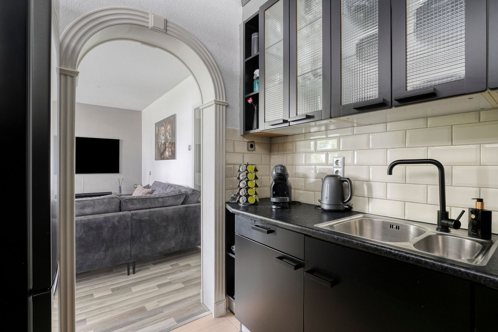 Vanuit de hal kom je in de zeer lichte en zonnige woonkamer, welke een oppervlakte heeft van circa 23m² met een deur naar een heerlijk en zonnig balkon. Dit ruime balkon is gesitueerd op het noordwesten met hiermee de avondzon. Er is een open keuken, welke is voorzien van een L-vormige keukenopstelling met diverse inbouwapparatuur.